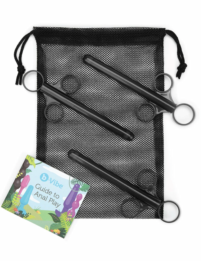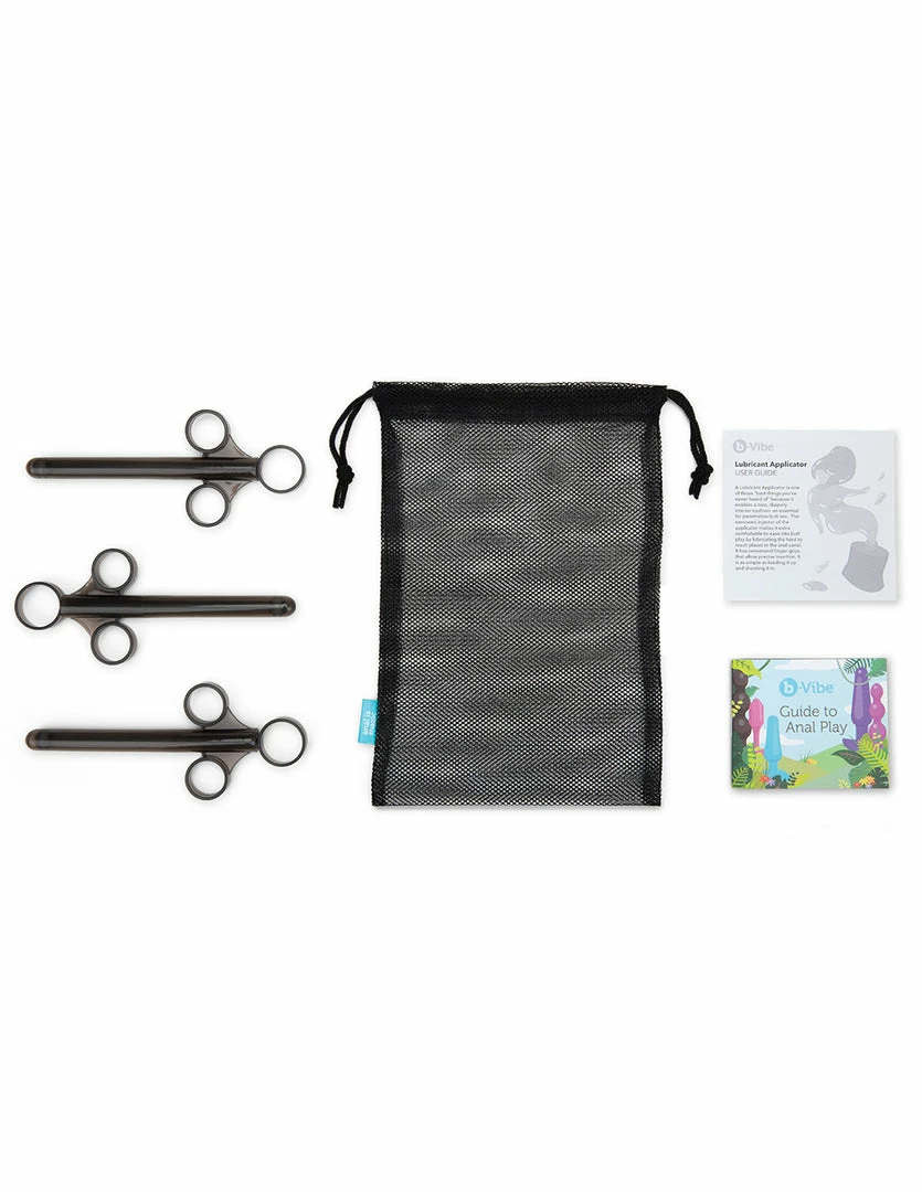 The Lubricant Applicator Set by B-Vibe allows you to easily apply lubrication inside the body without making a mess! These lubricant applicators are 6.4 inches long, 0.5 inches wide, and can be inserted up to 3.4 inches. These applicators help you accurately apply your favorite lubrication and is compatible with all lubricants. The tip of the applicator is smooth, easy to insert, and great to use for vaginal or anal play! They also come sealed with a removable cap which prevents leaking and makes it handy for ready to use application.