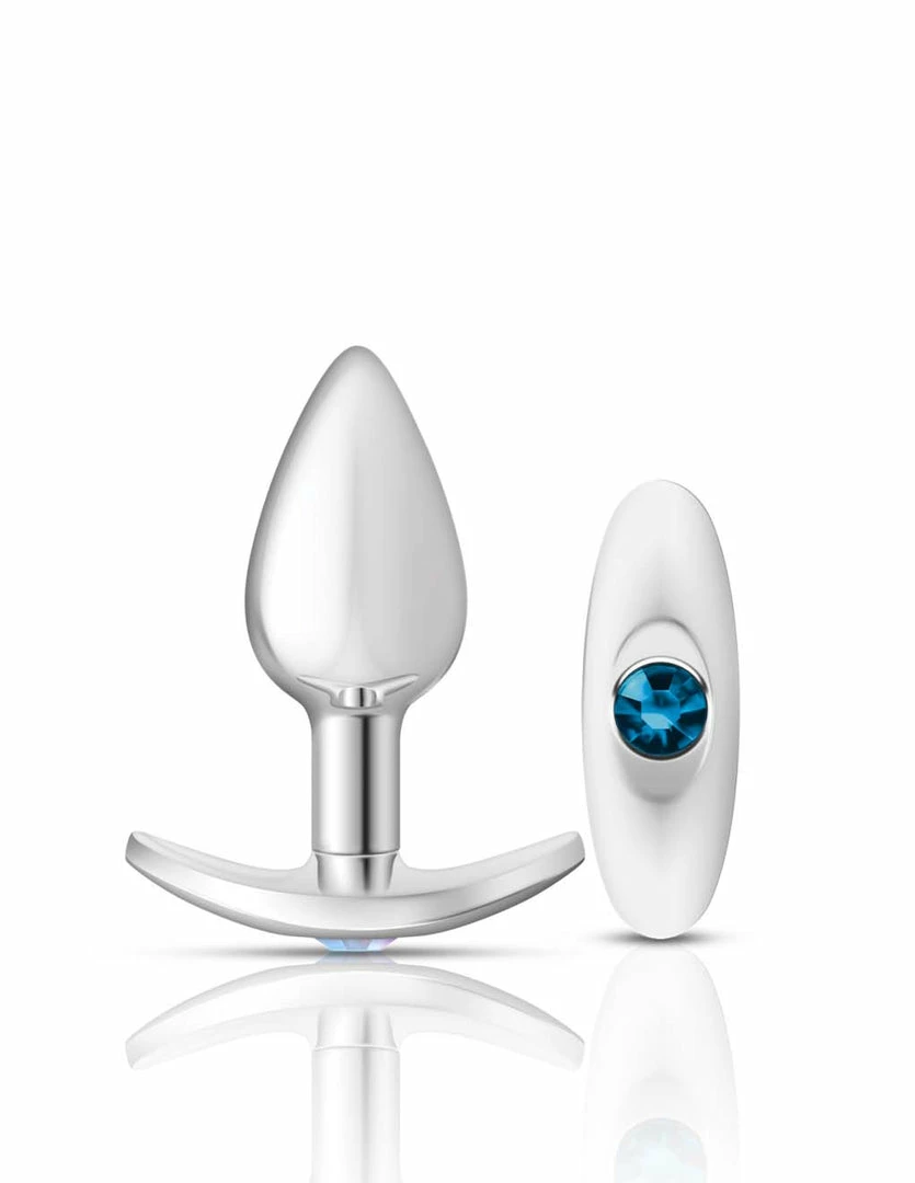 Cheeky Charms Anchor Kit is a metal teardrop shaped anal plug with a choice of interchangeable bases. Have your base be dripped in your choice of jewels, switching between clear iridescent, and either blue or pink. This unique slim base is designed for long-term wear and comfortability, nestling gently between your cheeks. The tapered shaped eases its way into your backside especially with help from your favorite lubricants. The metal material is body safe, nonporous, nickel free, and made of an aluminum alloy. The interchangeable bases give you choices of which jewel you decide to use. It is easy to clean and is dishwasher safe. Each plug measures with a length of 2.81 inches with a width of 1 inch.