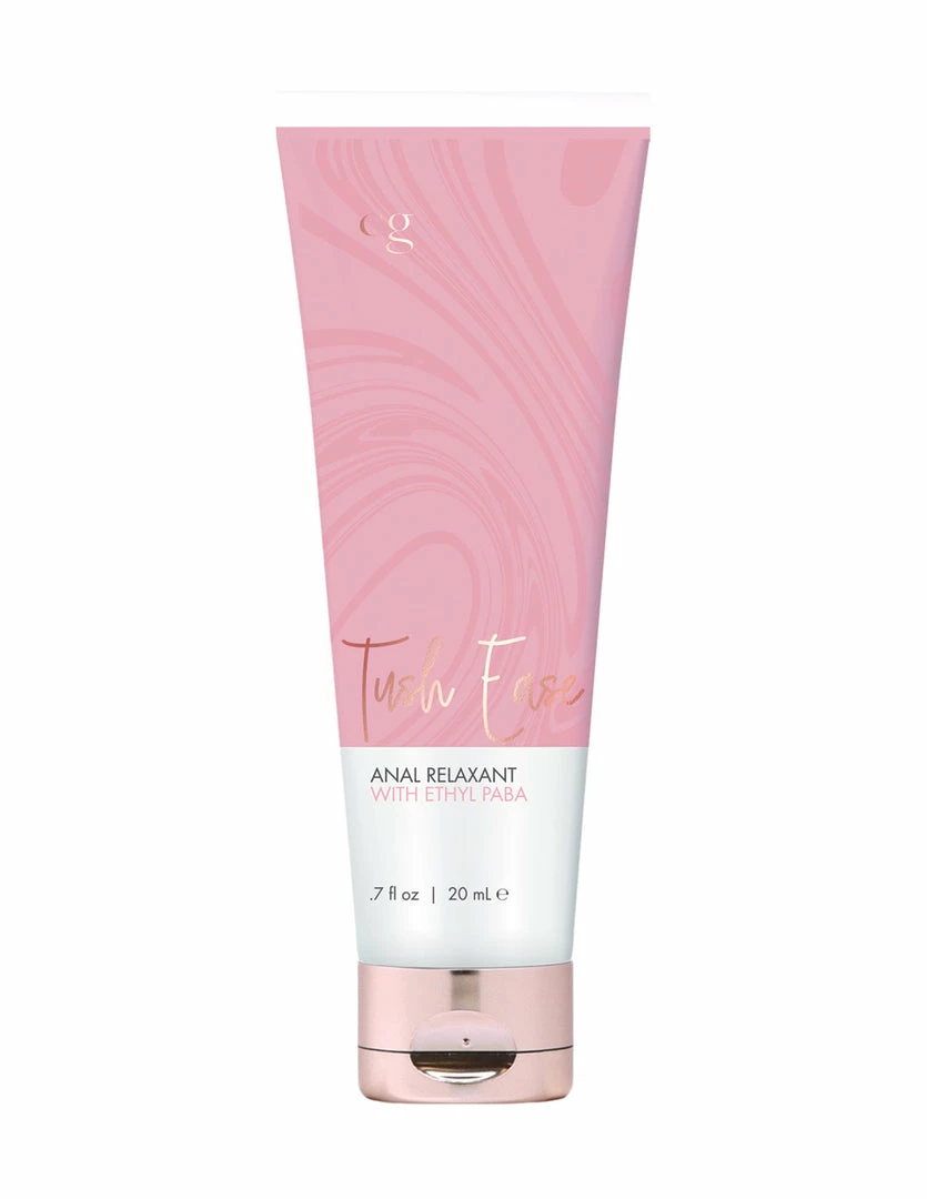 Tush Ease by CG is an anal relaxant gel. Use this to prep-start anal play. Rub this gel around the anal sphincter. It will make penetration a little more bearable with initial insertion. It contains 4.9% Benzocaine and Ethyl PABA for its relaxing properties. This gel is safe to use with toys and partners.