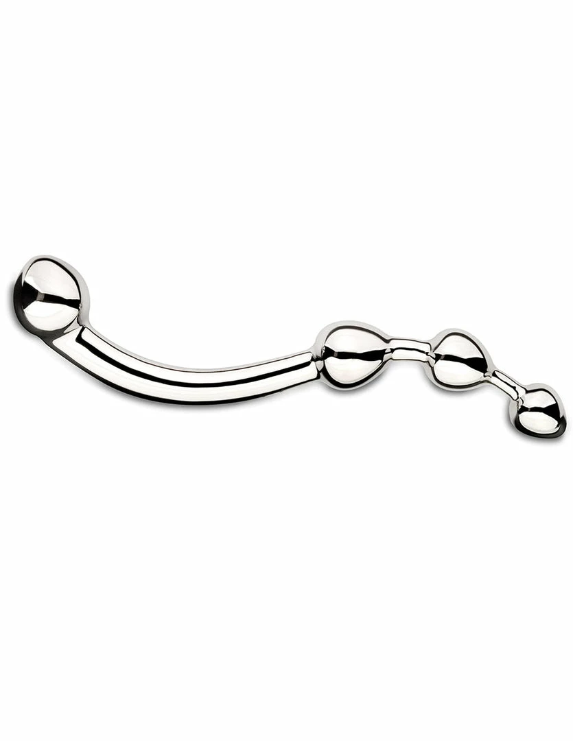 Two toys in 1, this medical grade stainless steel dildo can be used for satisfying the anus, probing the p-spot, or massaging the g-spot. It is cold to the touch but can be warmed up by running it under hot water prior to use. Njoy Fun is a very hygienic toy. It is non-porous. Bacteria cannot grow inside of it. Boiling it for 3 minutes will sterilize the toy. Its weighted metal will deliver a sensational feeling of fullness. The beaded end is tapered for anal pleasure. It is curved to massage the p-spot. For an even bolder sensation, the bulbous curved end can be used to massage the p-spot or g-spot. Pushing downward on the toy, while it is in an up-right position inside, will apply pressure on the g-spot or p-spot erogenous zone. The metal feels smooth with a mirror like finish.