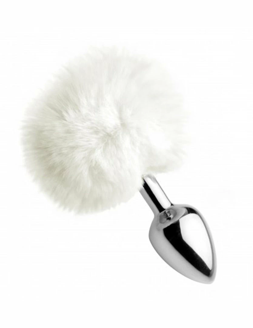 This Bunny Tail Plug by Tailz is a zinc alloy metal anal plug. This plug is 5 inches long, 1 inch wide, and has 2.5 inches of insertable length. The fluffy bunny tail is made of soft faux fur. This plug looks sweet on any behind. Use it for fun anal play or role play fantasies. This plug is compatible with any lubricant. Its tapered tip and slim design makes wearing this plug easy to wear. It is perfect for beginners.
