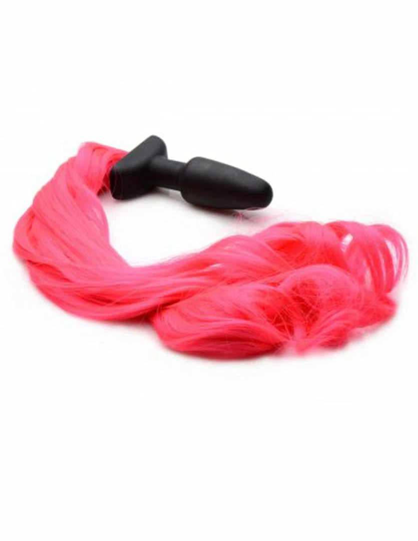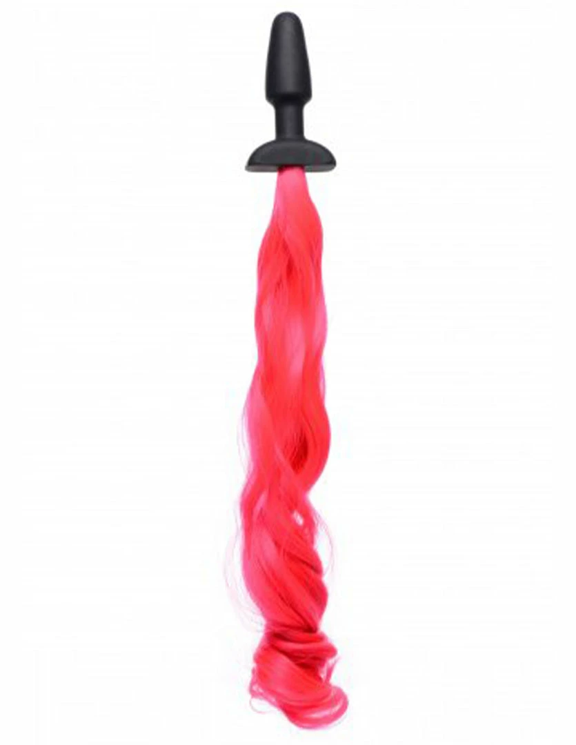 The Pony Tail Plug by Tailz is a beautiful anal plug. It is made of long synthetic fibers with a silicone plug. The plug is 1.3 inches wide and has 3.5 inches of insertable length. The plug and tail are 24.25 inches long. Sway your tail when the plug is inserted. It can be brushed, braided, and twisted for curls. The plug has a flared base that keeps it anchored and fits between the cheeks. Use water based lubricant with this plug.