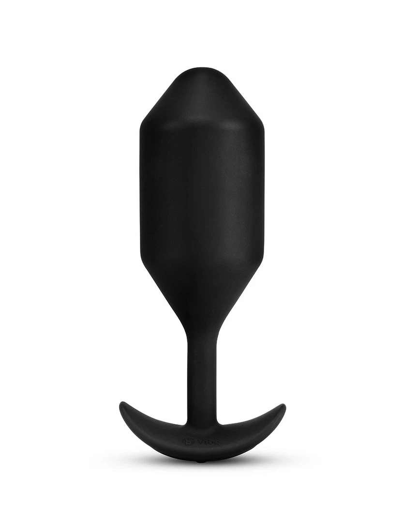 The Vibrating Snug Plug 5 by B-Vibe is an extra-large, weighted, vibrating anal plug. This plug weighs 350 grams. The Snug Plug 5 is 6.4 inches long, 1.95 inches wide, and has 5.9 inches of insertable length. It is coated with smooth silicone material. This vibrating plug is USB rechargeable and fully water submersible.