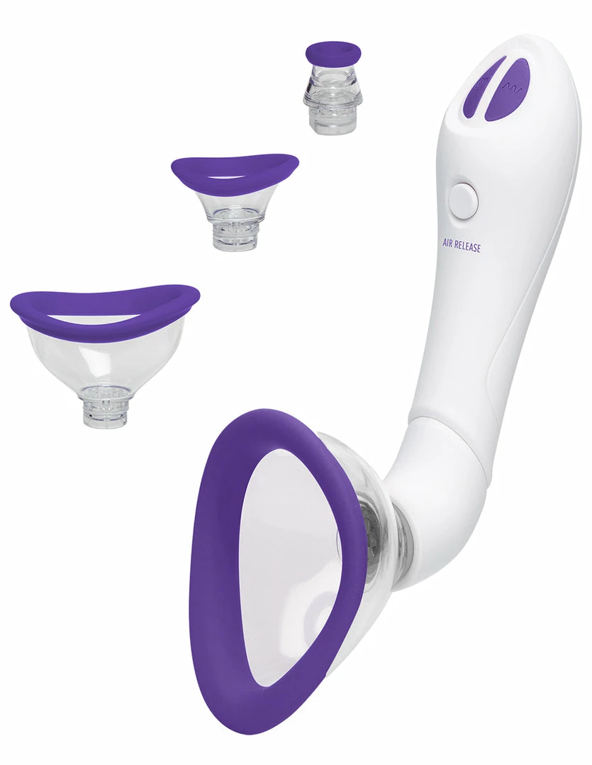 Use each sized cup for the nipples, clitoris, labia, and vulva. The pump pulls blood into these areas, making them more sensitive and pleasurable to play with. This pump can be used during sex or masturbation to help blood flow or as a device to stimulate one area while its user or their partner focuses on another.