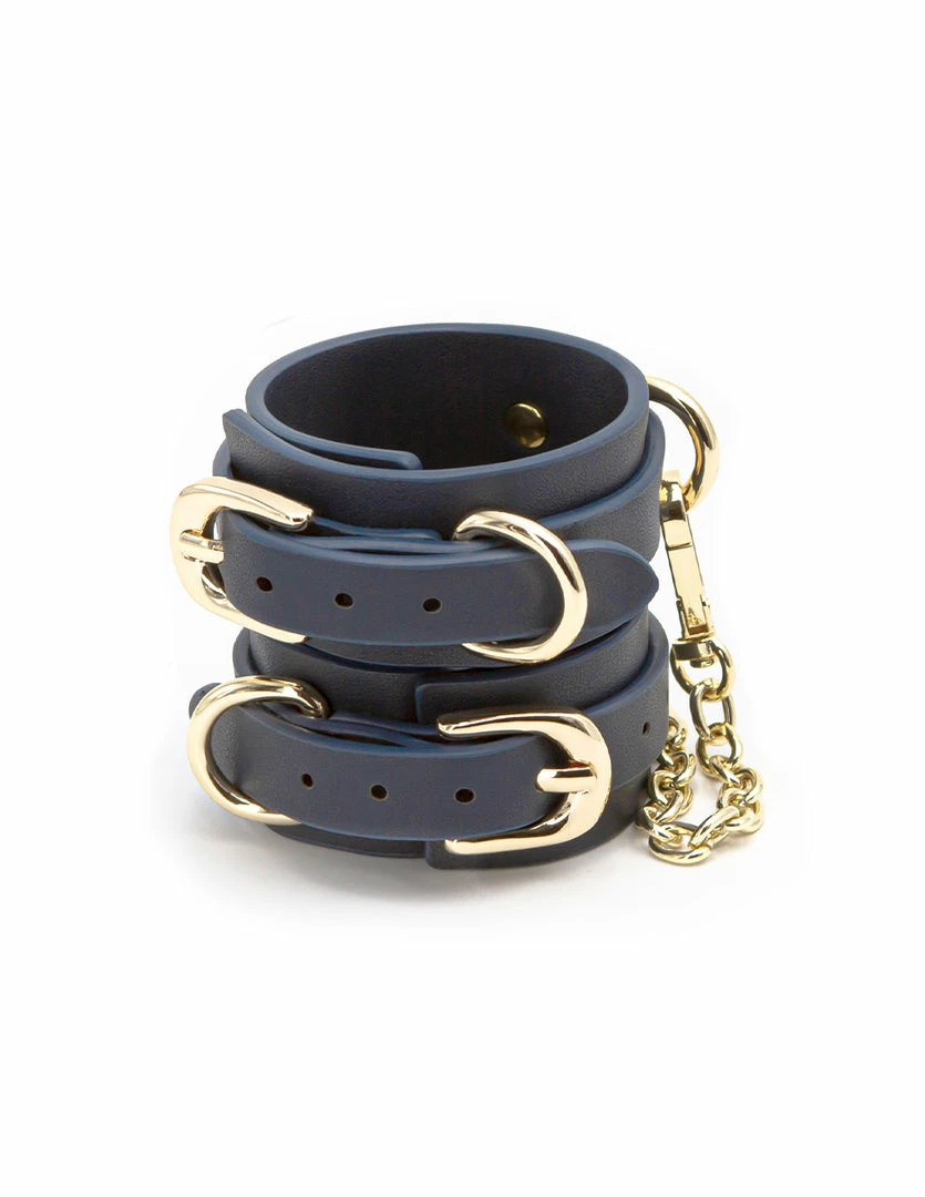Adorn your lover’s hands in these beautiful Wrist Cuffs by Bondage Couture. They are made of vegan leather with gold colored hardware. The cuffs measure out to 11.57 inches long. The chains can be detached and attached to bed restraints. The wrist cuffs feel and look luxurious. Pair these wrist cuffs with Bondage Couture’s Ankle Cuffs for the full body bondage experience. These cuffs have a 1 year manufacturer’s warranty through NS Novelties.