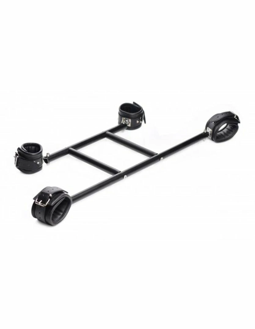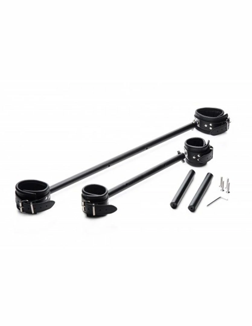Put your submissive in the Deluxe Wrist and Ankle Spreader Bar by Master Series to expose their most intimate parts. The leg spreader is 25 inches long with ankle cuffs that fit up to a 13 inch circumference. The arm spreader bar is 13.75 inches long with up to 10 inch circumference wrist cuffs. The wrist and ankle cuffs are made of leather material. The connector bars are 8 inches long. This spreader bar can be detached and used separately. It includes an Allen wrench to detach the connector bars. Please play responsibly.