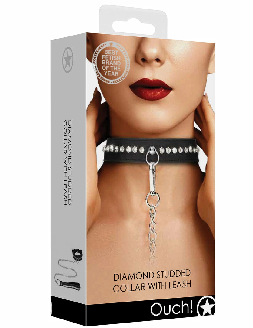 Bondage Ouch! Diamond Studded Collar & Leash