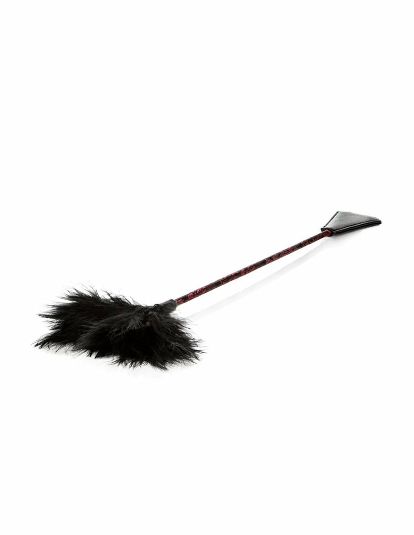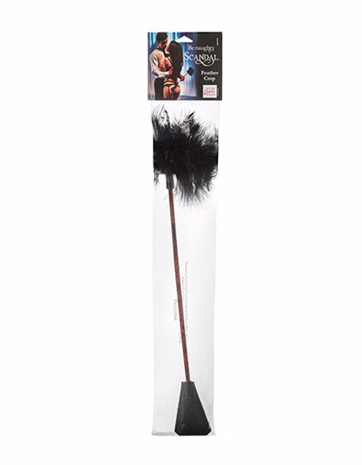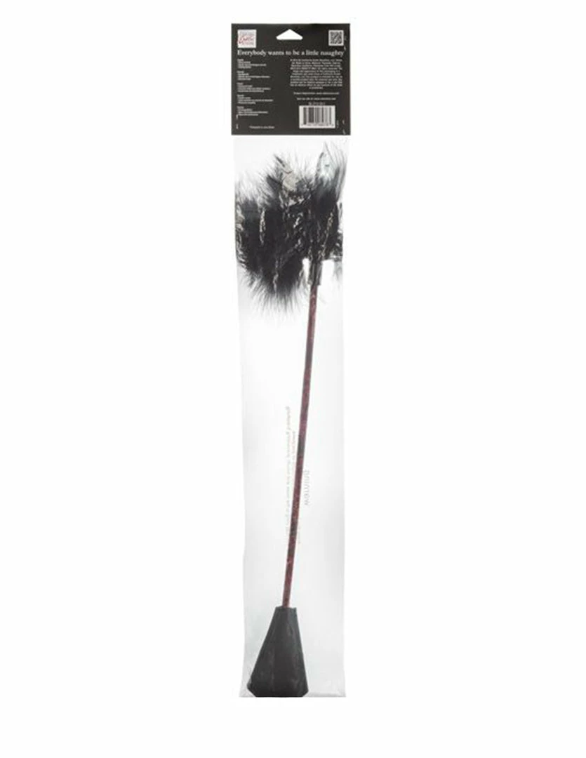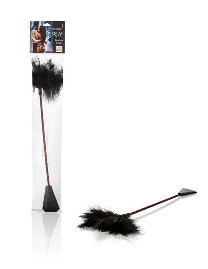 Feather ticklers and crops are great beginner tools for light bdsm. The Scandal Feather Crop is 21 inches and dual sided. One side delivers light to sharp spanks with a flat crop, while the other can be used to tease the newly spanked area with its lavish feathers. Explore pleasure and pain with different combinations of spanking and soothing. Your lover will be excited with anticipation as the crop or feather side is lightly dragged against their skin. Use this dual sided crop to spice up the foreplay or with bondage and restraints. Remember your safe word and please play responsibly.