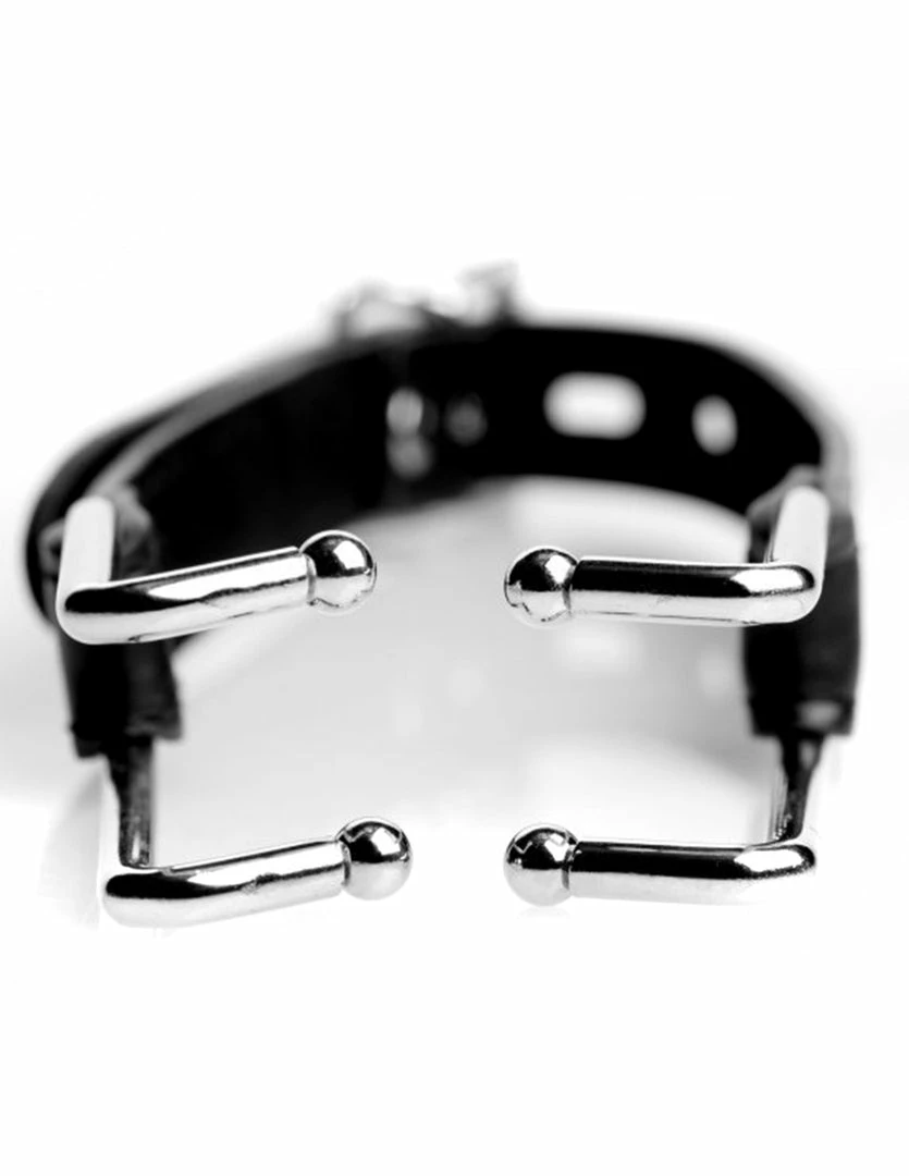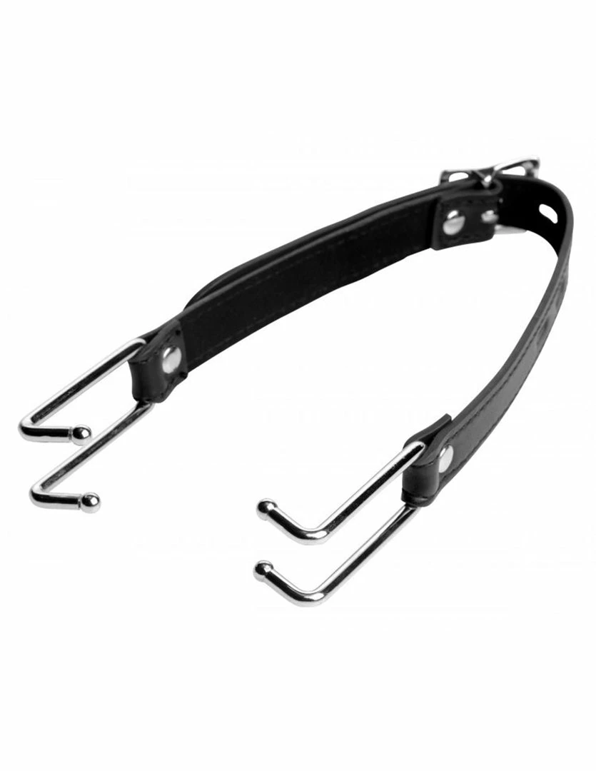 Pry your partner’s mouth open with the Claw Hook Mouth Spreader by Strict! This classic mouth spreader features 2 round-tipped, double-pronged metal hooks that pull your partner’s lips open and taut for their utmost discomfort and your satisfaction. It keeps the mouth spread open to prevent biting, spitting, and speaking. Place the rounded tips in either side of their mouth and then adjust the strap until their lips are pulled tight. A locking buckle allows you to trap them in the vice, leaving their mouth open for whatever invasion you can think up!