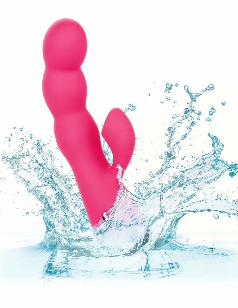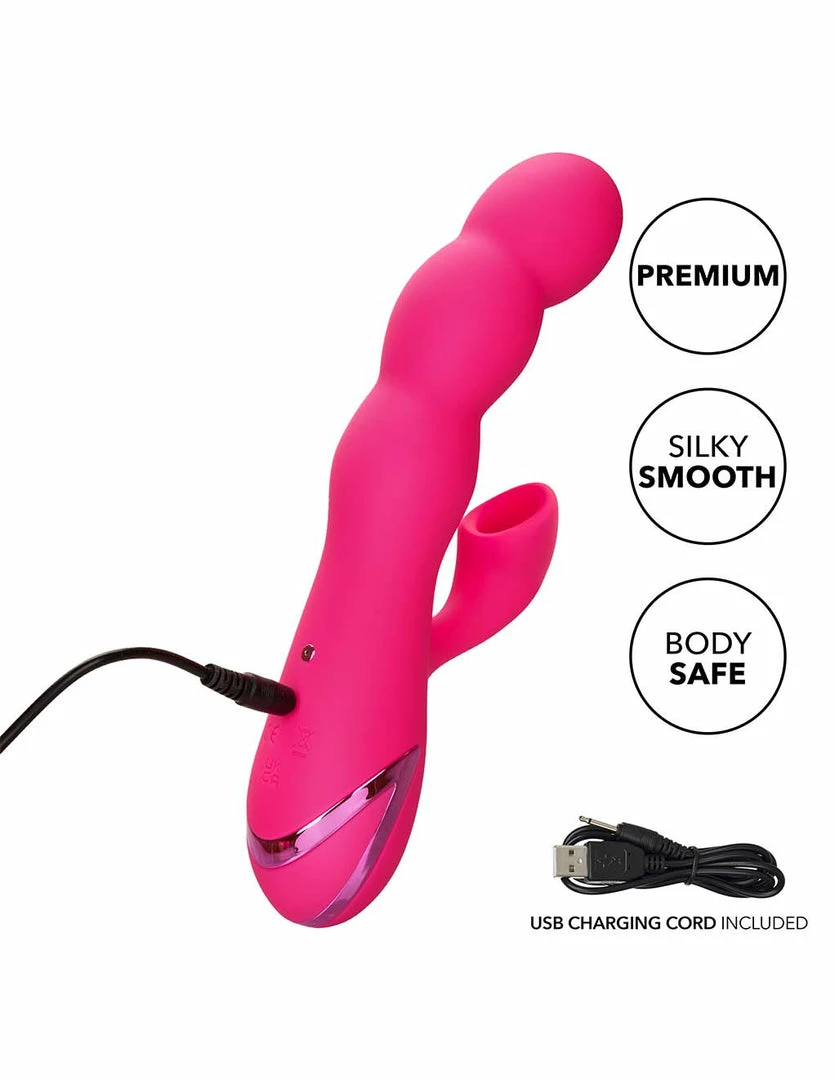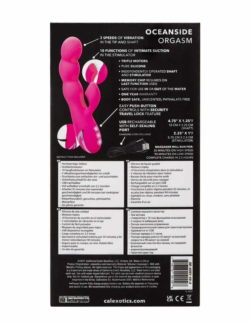 The California coast definitely brings good weather and most of all good vibes. One of them specifically are California Dreaming Oceanside Orgasm. This uniquely shaped dual vibrator is equipped with 10 powerful functions of clitoral suction and 3 vibration speeds. The internal stimulator has a bulb like shape to really get in there and stimulate your g-spot. Let each vibration of the the curvy shaft bring you pleasure as you penetrate. The outer sucker feature 10 different functions giving you the ultimate exterior pleasure all while penetrating yourself. With the mixture of speeds and functions along with the unique ergonomic shape, you’ll be bound to create quite the customizable experience. The Oceanside Orgasm is made up of a soft silicone material that is body safe and waterproof. The 3 button control pad will let you control independently so you or your partner can make the moves. The thing about waves they’ll always come back as there is a built in memory chip which will know your past functions from the last use. Utilize the USB charger in the kit to get a full charge of 2.5 hours to play up to 90 minutes. The tiered shaft measures with 4.75 inches by 1.25 inches while the external sucker measures with 2.25 inches by 1 inch. Ride the wave on the California coast that is the California Dreaming Oceanside Orgasm.