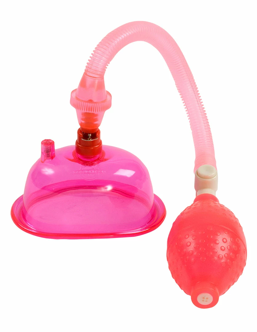 The Pussy Pump by Doc Johnson is a beginner pussy pump. Pussy pumps pull the blood forward, making the clitoris and labia extra sensitive. The cup of the pump is made of PVC plastic. It is 4.3 inches long and 3.1 inches wide.