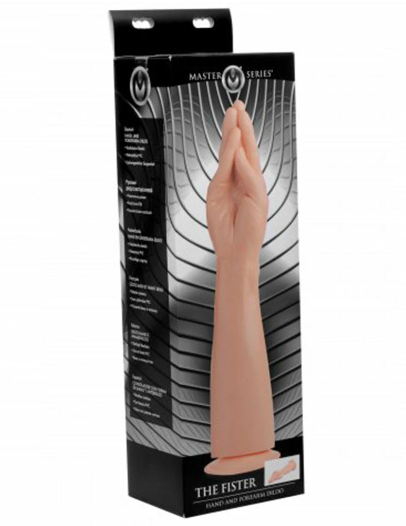 If fisting is your fetish, this suction cup dildo is for you. The Fister Hand and Forearm Dildo by Master Series is 15 inches at length. It has 13.75 inches of insertable length and is 2.9 inches wide. This dildo is made of PVC. The base has a suction cup. Stick it on to any non-porous surface for a strong hold. This dildo can also be used in a harness strap- on with an O-ring. Wash it with your favorite toy cleaner and warm water before and after each use.