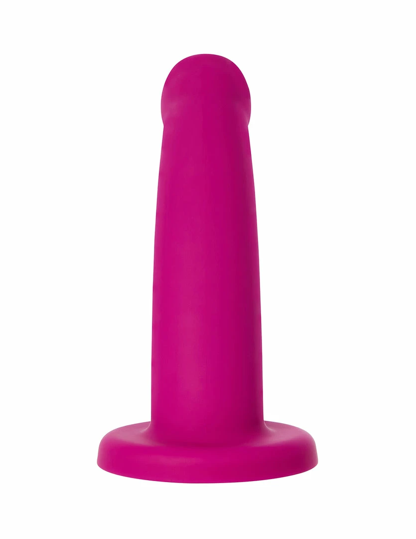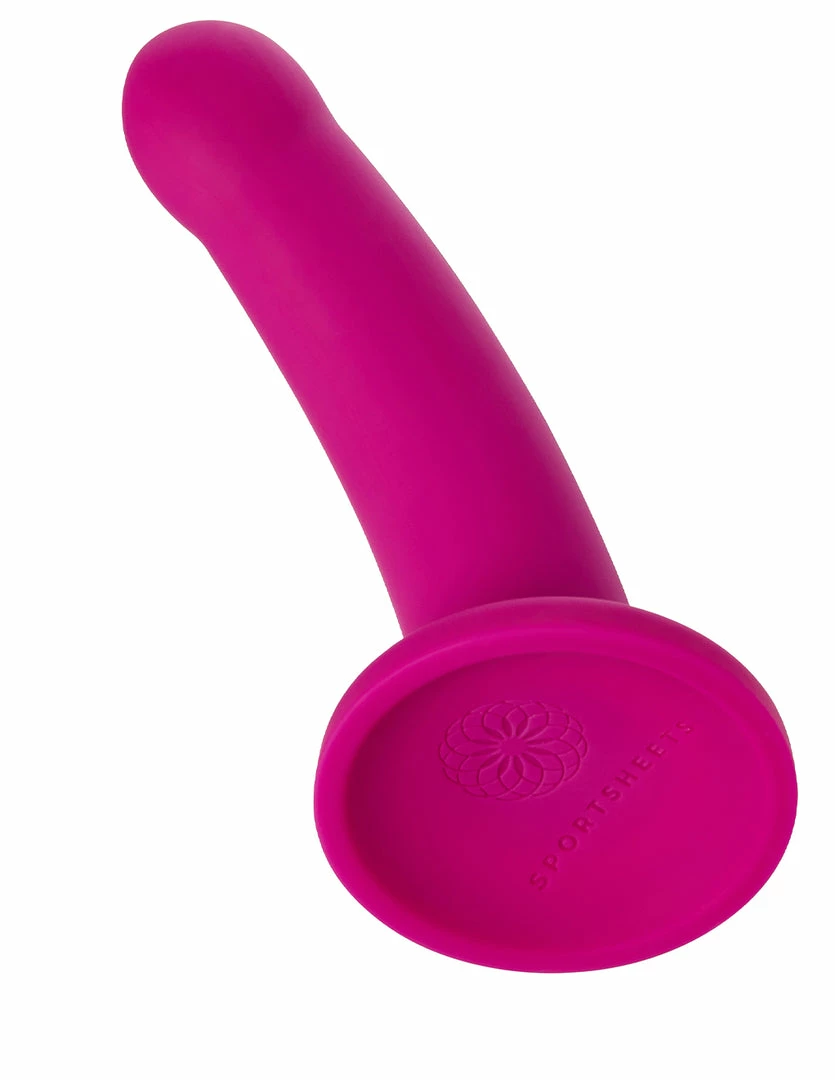 It has a flared-suction-cup base. Stick it on any non-porous surface for a strong hold. It is harness compatible. Slip it into any Sportsheets harness ring. Its flared base sits nicely between the harness ring and its user.