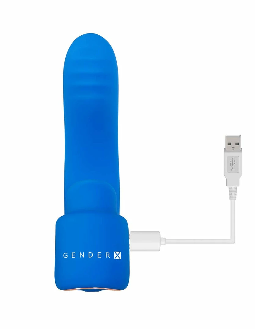 Get all tongue tied up with the Gender X Flick It. This finger vibrator comes with multiple functions and speeds all while being equipped with the flicking tongue. Get into the gently arched body and textured shaft. Gender X Flick It has 9 different vibration and tongue flicking speeds. Each end had its own separate motors that can function at different times or together. The flexible shaft is easy to use for you to stimulate your g spot. Simply slip over the toy over your finger and get to town with the 3.25 inches of insertable length and width of 1.53 inches. The silicone material is body safe, waterproof, and submersible. Never let the fun run out by using the the USB charging cable that is included.