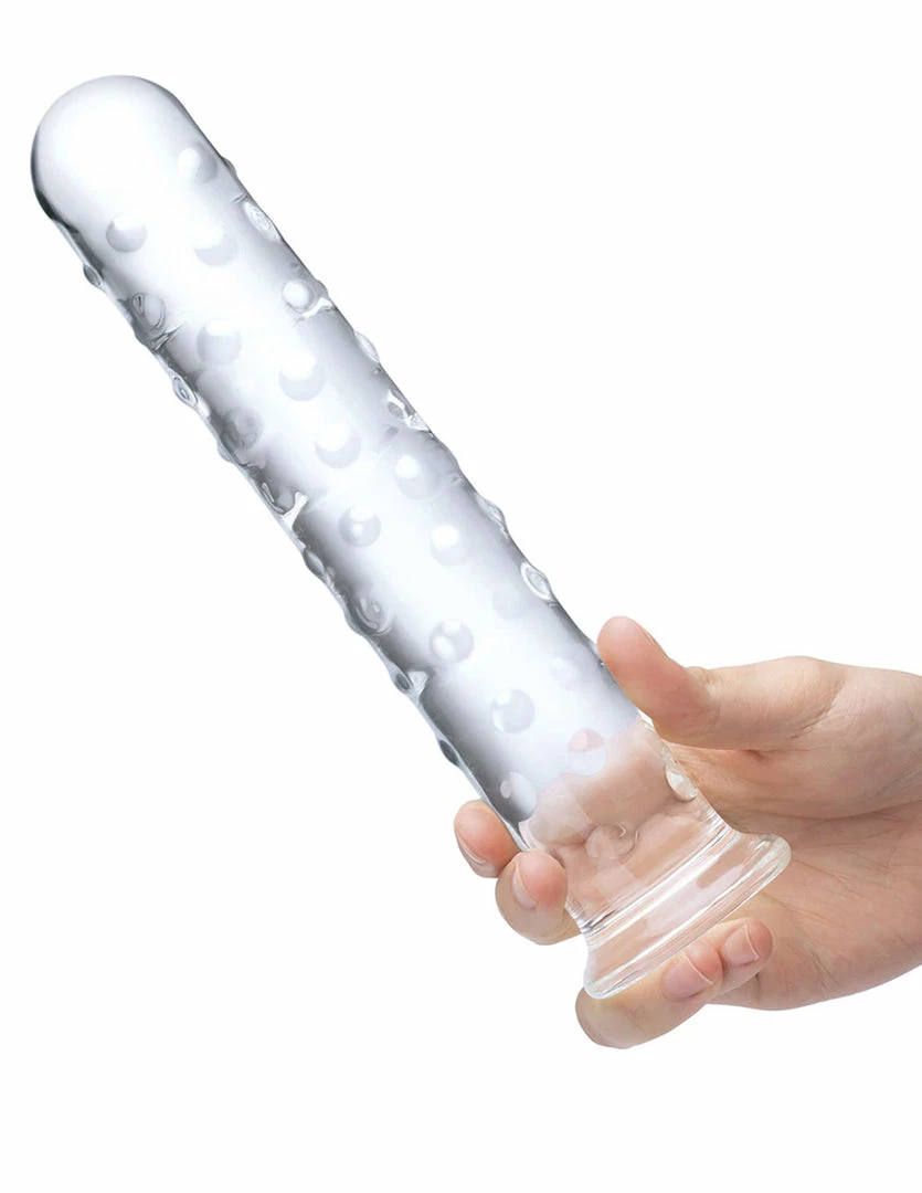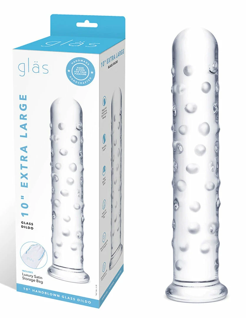 When you’re on the hunt for something bulbously wide and satisfying look no further than the Glas 10″ Extra Large Dildo. This non phallic large dildo is clearly your next winner. It features a long and wide shaft with bulbous humps throughout for added riveting texture. It measures with an insertable length of a towering of 10 inches. The glass material transfers warm or cooling temps throughout the body with ease. It can be paired with your favorite lubricant.