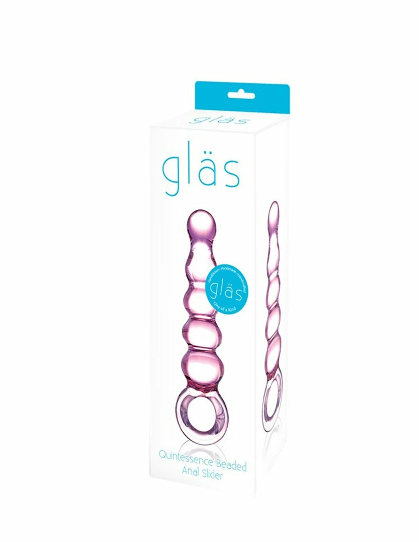 The Glas Quintessence Beaded Glass Anal Slider is hard, durable, and smooth as silk. Properly lubed, this toy becomes incredibly slick making it perfect for working one’s way to bigger anal adventures. Our unique droplet beaded design is perfect for increasing levels of anal penetration and pleasure. The Quintessence Beaded Anal Slider features a hi-durability handle for greater control and easy retrieval. Each bulbous section is sure to deliver exquisite stimulation when inserted, as well as when it is pulled out. You may also experiment with temperature play by heating or cooling this pleasure product with water.