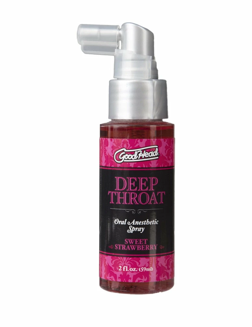 Deep Throat Desensitizing Spray helps minimize the gag reflex. It uses Benzocaine for a light numbing effect. It has an easy-to-use spray nozzle.
