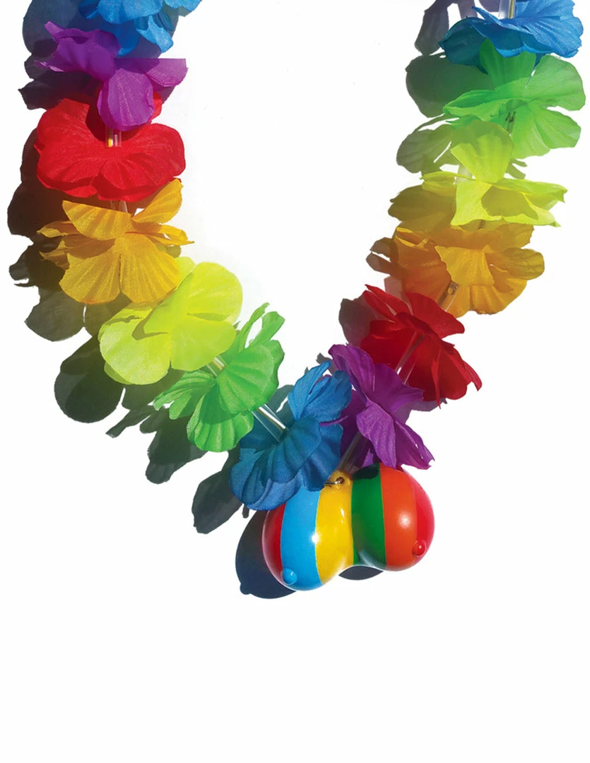 Get lei’d with the Rainbow Flower Boobie Necklace by Hott Products. This flower necklace has bright felt rainbow petals with a light up set of boobies. It is battery operated and comes with batteries. This necklace is perfect for bachelor/bachelorette events, adult birthday parties, and Pride events. It makes a great conversation piece.