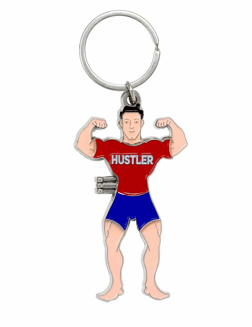 Finally a man worthy enough who can actually put his key in the ignition. Carry around the HUSTLER® Male Hinge Keychain. This metal sturdy souvenir features a well built enamel body of a man. He’s showing off a nice flex showing a built body. He’s wearing a HUSTLER® logo tee and some short shorts that compliment all the muscles. If you dare to see more, simply lift off the latch revealing his toned naked body. This key chain features a very sturdy keyring that you may attach to a lanyard, metal keys, or fobs. Let the man open the door for you with the HUSTLER® Male Hinge Keychain. F