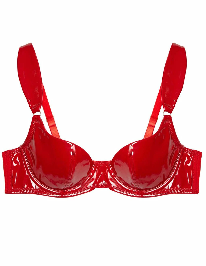 HUSTLER® Maxine PVC Sweetheart Bra gives you the perfect wet look item for your Valentine’s Day season. This sweetheart bra is made up of a durable PVC to take repel moisture and add to any sexy BDSM look. The thick straps are adjustable and contrasted with metal o-ring details. The sweetheart cup and underwire pushes up the breasts making them look more supple. The thick bodice attaches in the back with hook and eye closures. To amplify your sexy Valentine’s day look go for the ever demanding HUSTLER® Maxine PVC Sweetheart Bra. To complete the look pair with HUSTLER® Maxine PVC Brief or HUSTLER® Maxine PVC Thong.