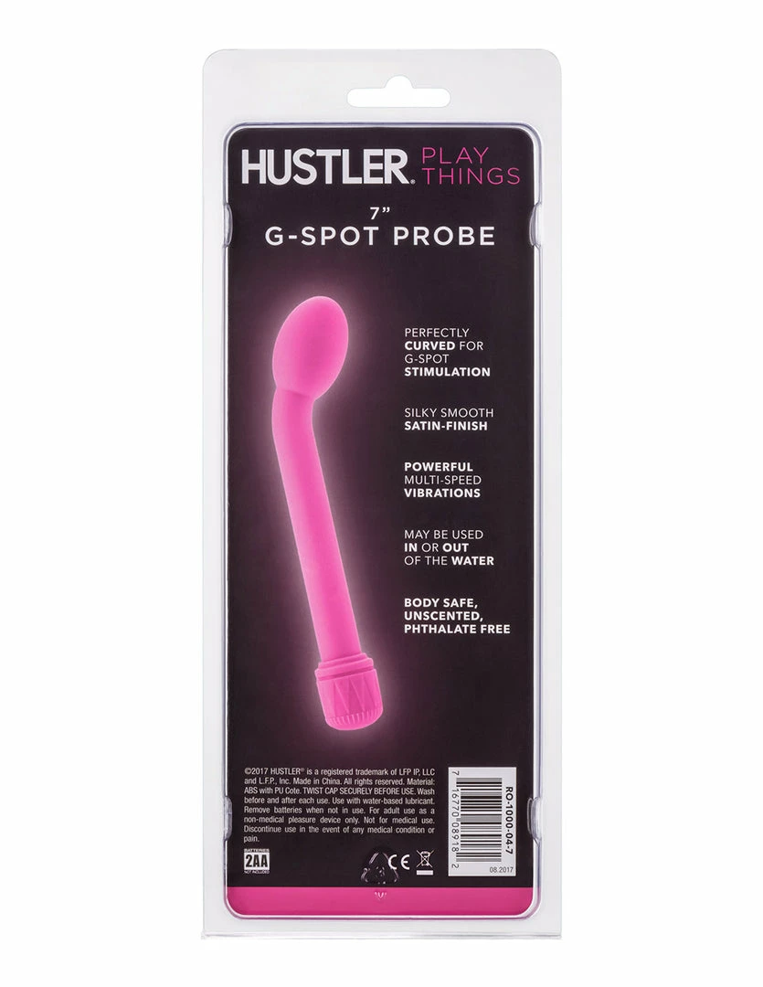 The 7 inch G-spot Probe by HUSTLER® Playthings is a great first time vibrator for those wanting to explore their G-spot. For maximum pleasure, the velvety soft, sleek and slender stimulator features a solid shaft and perfectly angled tulip bulb-shaped tip. Tantalize your erogenous zones with the power-packed multi-speed vibe.