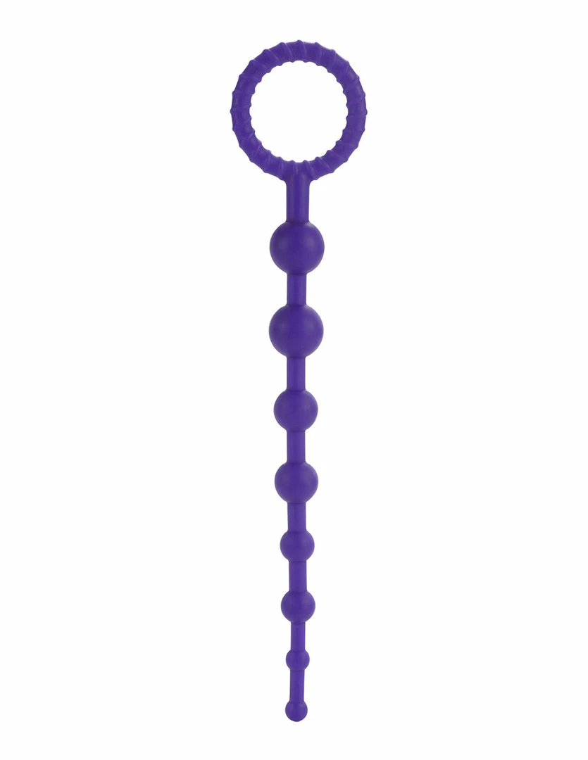 These Silicone Anal Beads by HUSTLER® Playthings is perfect for beginner anal play. These anal beads are 8 inches long, 0.75 inches wide, and has 6 inches of insertable length. Made of silicone material, these beads are easy to clean and are flexible to push in or pull out comfortably. Use with water based lube and start off by easing the first bead by pushing it back and forth against the opening until it goes in. Use the same motion until the second goes in and play with which beads or motions feel great. Its 2 inch wide retrieval ring keeps the beads secure from getting lost inside.