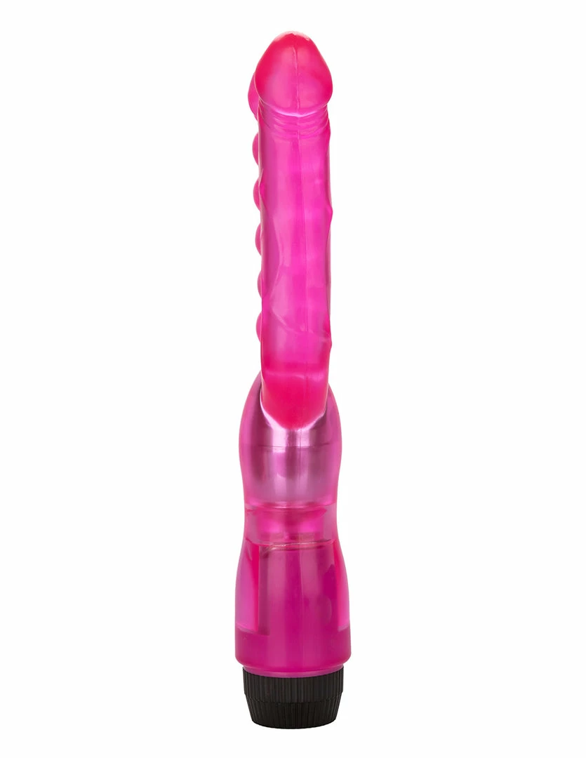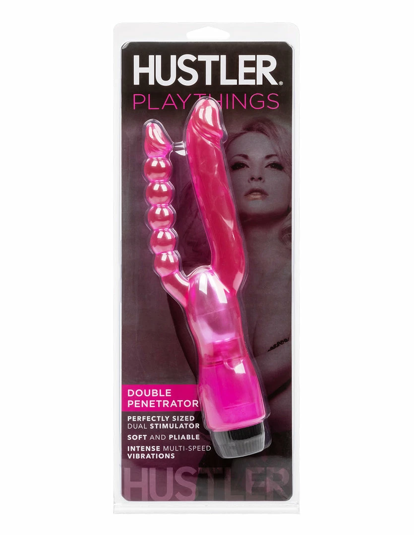 Enjoy double the arousal with this power-packed dual penetrator vibrator. This pliable and flexible vibrator is the ultimate toy for vaginal and anal stimulation. The double-ended vibe has a textured penis shaped dong for tantalizing vaginal pleasure, and a soft, beaded probe, for satisfying anal arousal. This easy to use vibrator is made from PVC and has multiple speeds. To control the speed of vibration, simply twist the cap to increase or decrease speeds.