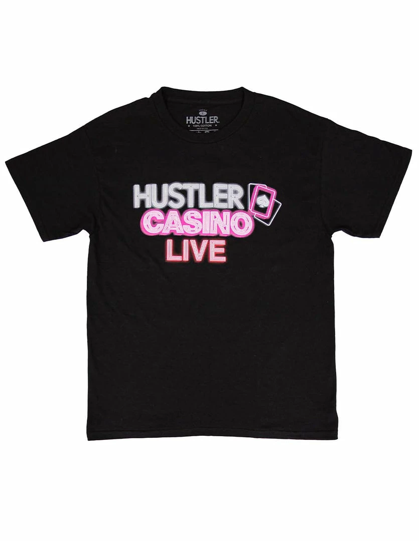 Gamble in style with the HUSTLER® Casino Neon Live T-Shirt. This comfy and simple tee features the HUSTLER® Casino Live show logo! You’ll definitely have a lucky hand, and you’ll definitely want to play your cards right in this t-shirt. It features short set in sleeves and a uniform cut that can be worn by anyone. Draw your luck in the HUSTLER® Casino Neon Live T-Shirt.