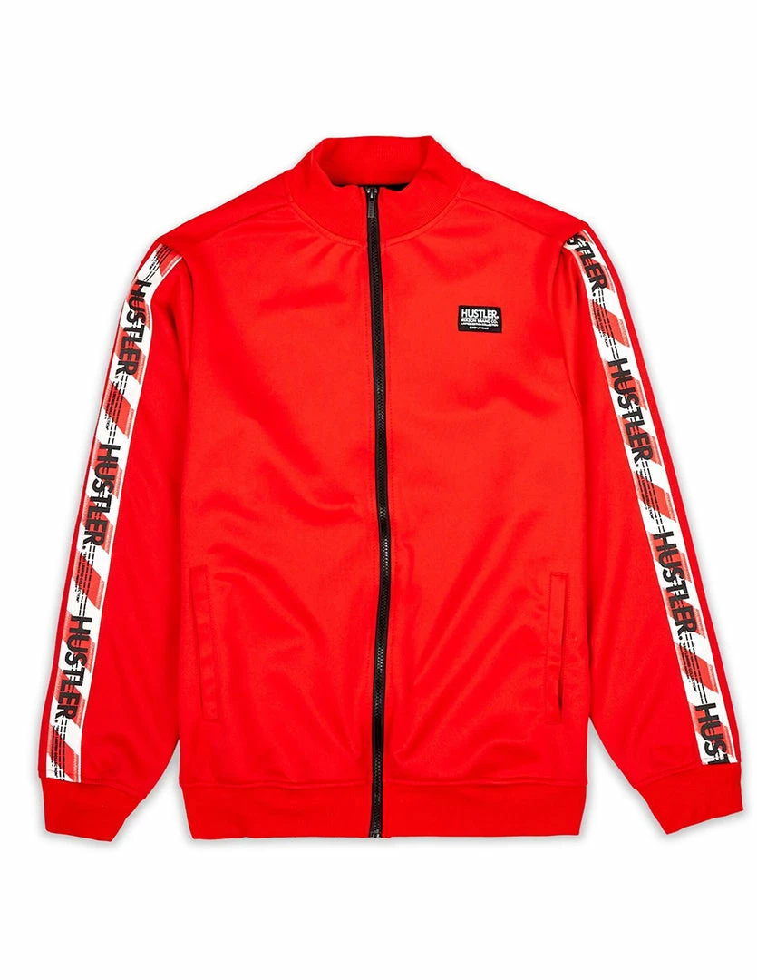 Our HUSTLER® Track Jacket is sporty and comfortable to wear. It features our HUSTLER® logo on top of the sleeves. It is made with quality material that stretches and cuffs around the waist, wrists, and neck. This jacket zips up to your neck to keep you warm. It allows you to move freely with style. Pair it with our HUSTLER® Track Pants.