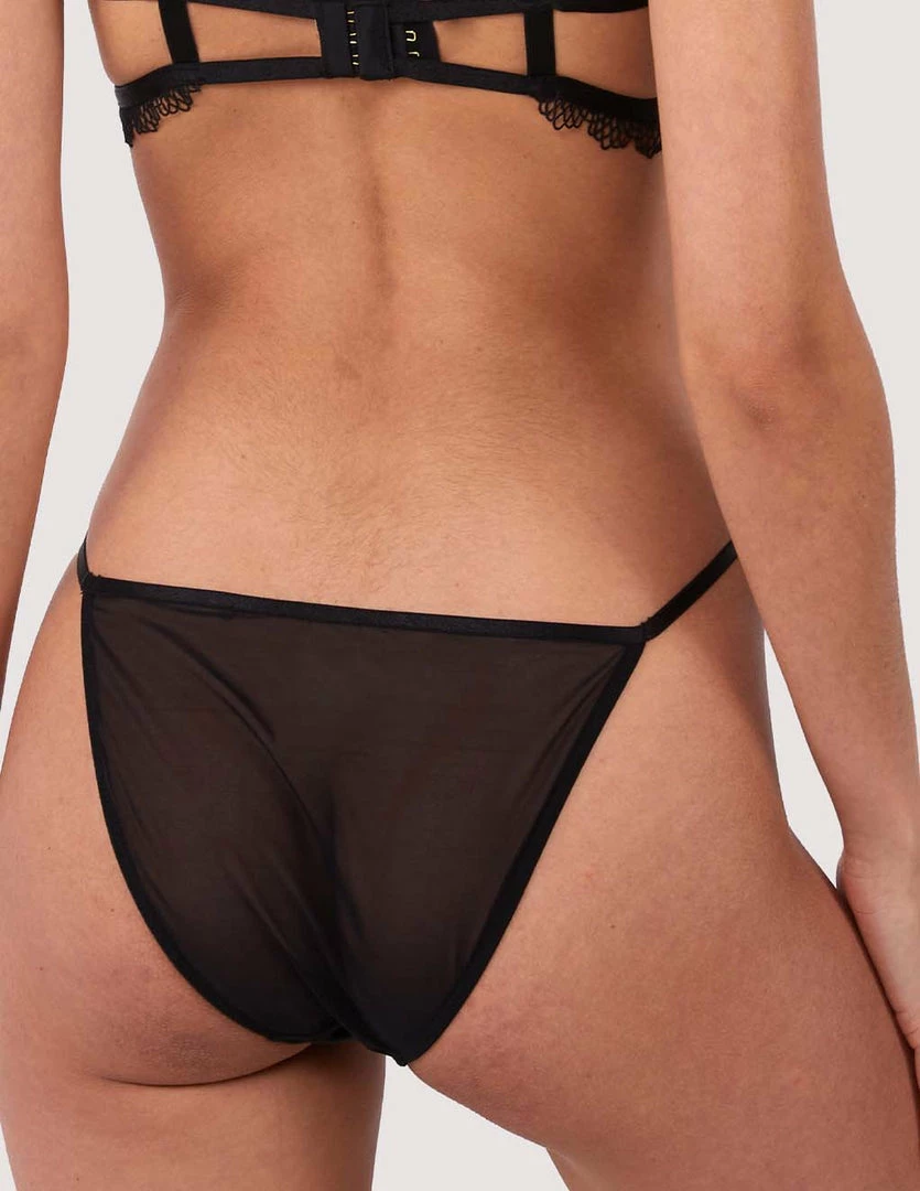 HUSTLER® Tallie Brief Black is a seductive tanga panty. Its mesh panels feels like it is barely there. Its thin straps sit perfectly above the hip. Pair it with the HUSTLER® Tallie Garter Belt Black and HUSTLER® Tallie Bra Black to complete this sexy look.
