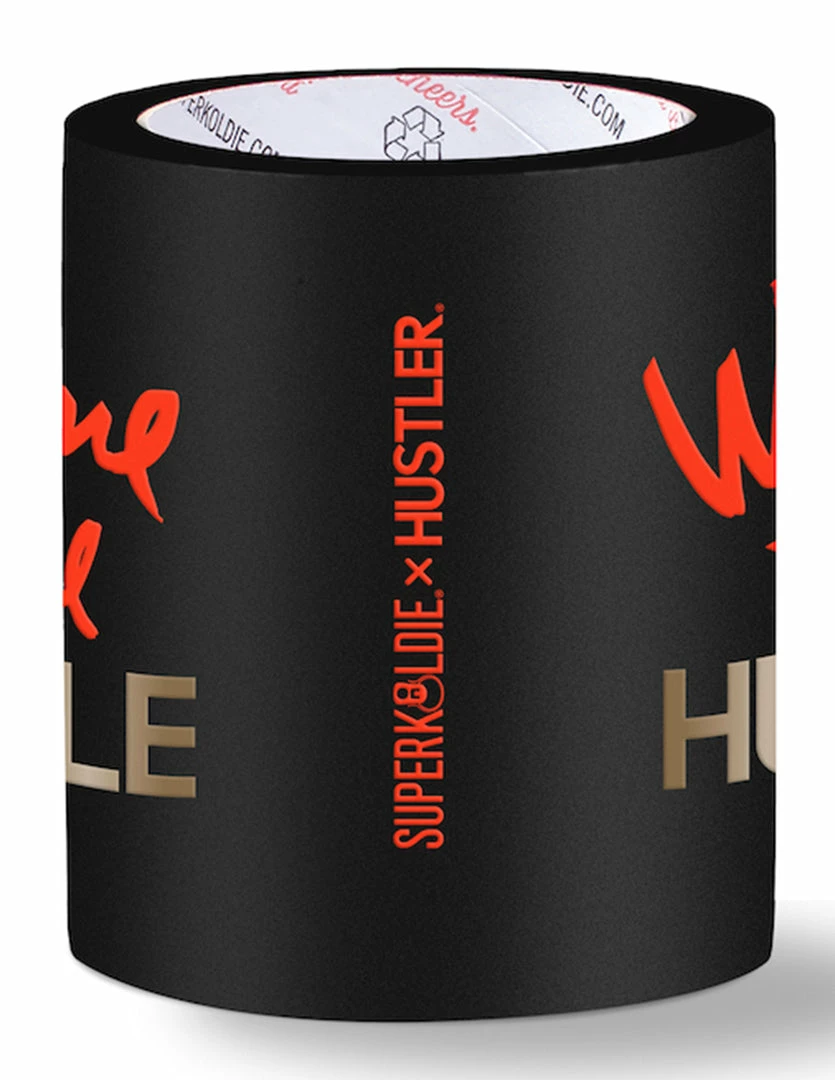 Superkoldie and HUSTLER introduces our can coolers. What makes this cooler unique is its Party Starter Button which allows you to drink your beer swiftly. It is 4 inches tall and 3.25 inches wide. It fits 12 ounce to 16 ounce standard cans. It is made of PVC foam. This cooler insulates your drink and keeps it cold 3 times longer.