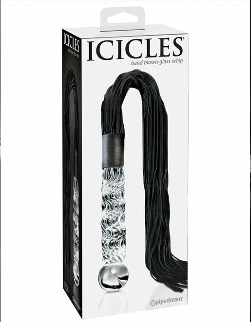No. 38 Hand Blown Glass Whip by Icicles is a glass dildo and leather flogger combination.