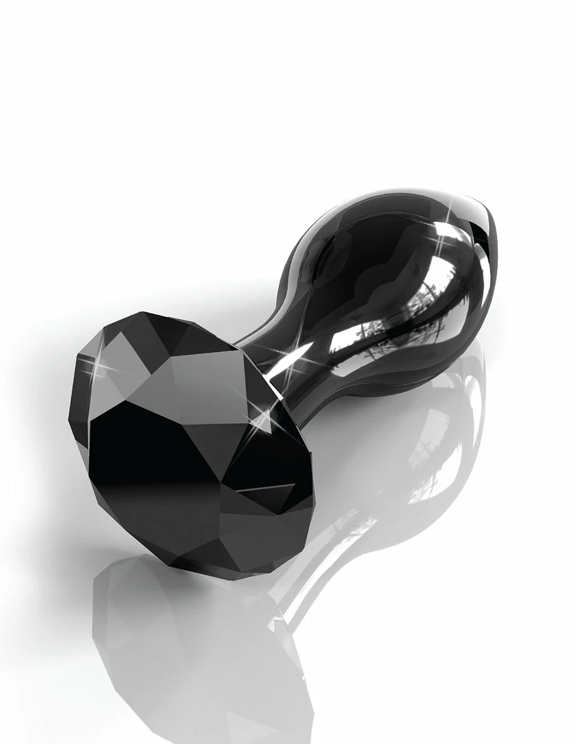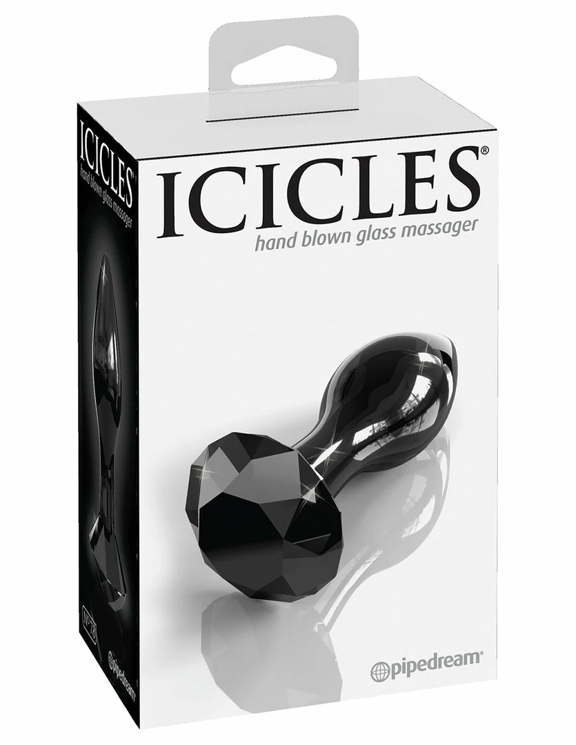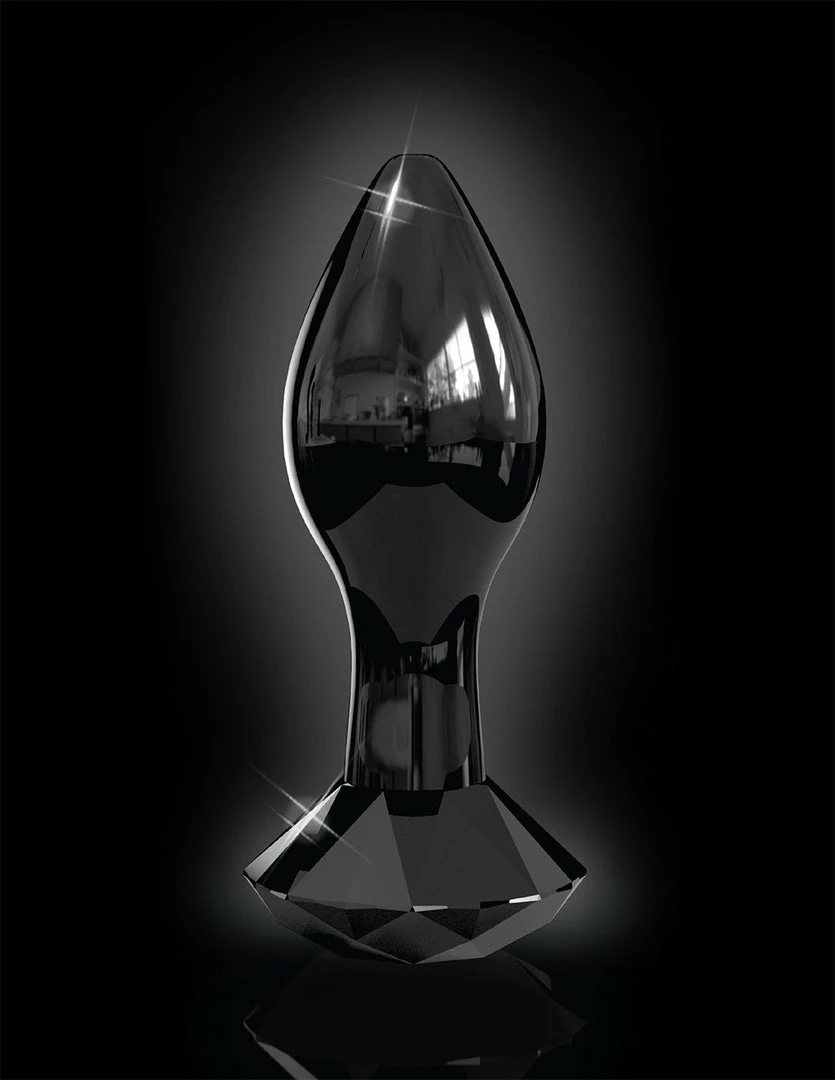 The No. 78 by Icicles is an elegant Black Diamond Plug. It is 3.6 long, with 2.9 inches of insertable length, and 1.2 inches wide. It is made with smooth, non-porous glass. Glass is one of the most hygienic toys to play with. The bulb of the plug is tapered for easy insertion. It is smooth, round, and wider than its narrow neck. Its narrow neck allows the muscle to comfortably relax around it. The black diamond is flared and acts as an anchor to keep the plug from going all the way in. This plug pairs well with a G-spot vibrator. The gem adds decor to your back door as it is plugged in.