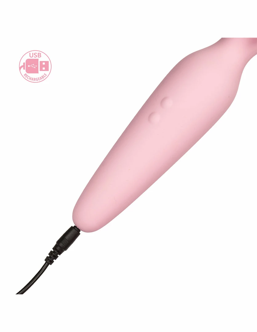 The Vibrating Ultimate Wand by Inspire is a small hand held wand massager. This massager is USB rechargeable and waterproof. It is 8.5 inches long and 1.75 inches wide. It is made of baby pink premium silicone. This material is very hygienic and non-porous. It has a small head for accurate massage. Massage your most intimate spots. Use the edge of the top for a more precise vibration. Its vibrations trigger deep nerve endings and leaves your muscles feeling relaxed. Play with up to 10 vibration patterns and speeds.