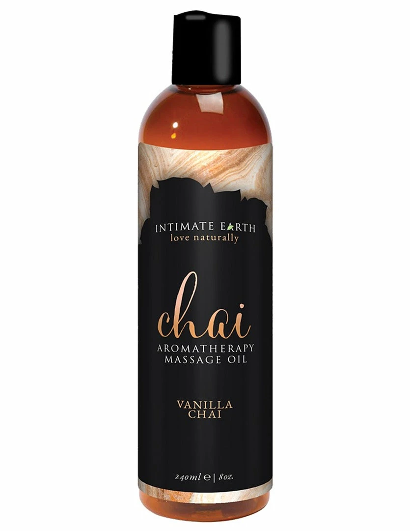 The Chai Massage Oil by Intimate Earth is made with sweet almond oil. It moisturizes the skin as well as invigorates your senses with aromas of chai and vanilla. The Chai Massage Oil is made with natural oils and certified extracts. It soothes sore muscles with its warm and spicy ingredients. Use on the body after showers or baths for softer, moisturized skin.