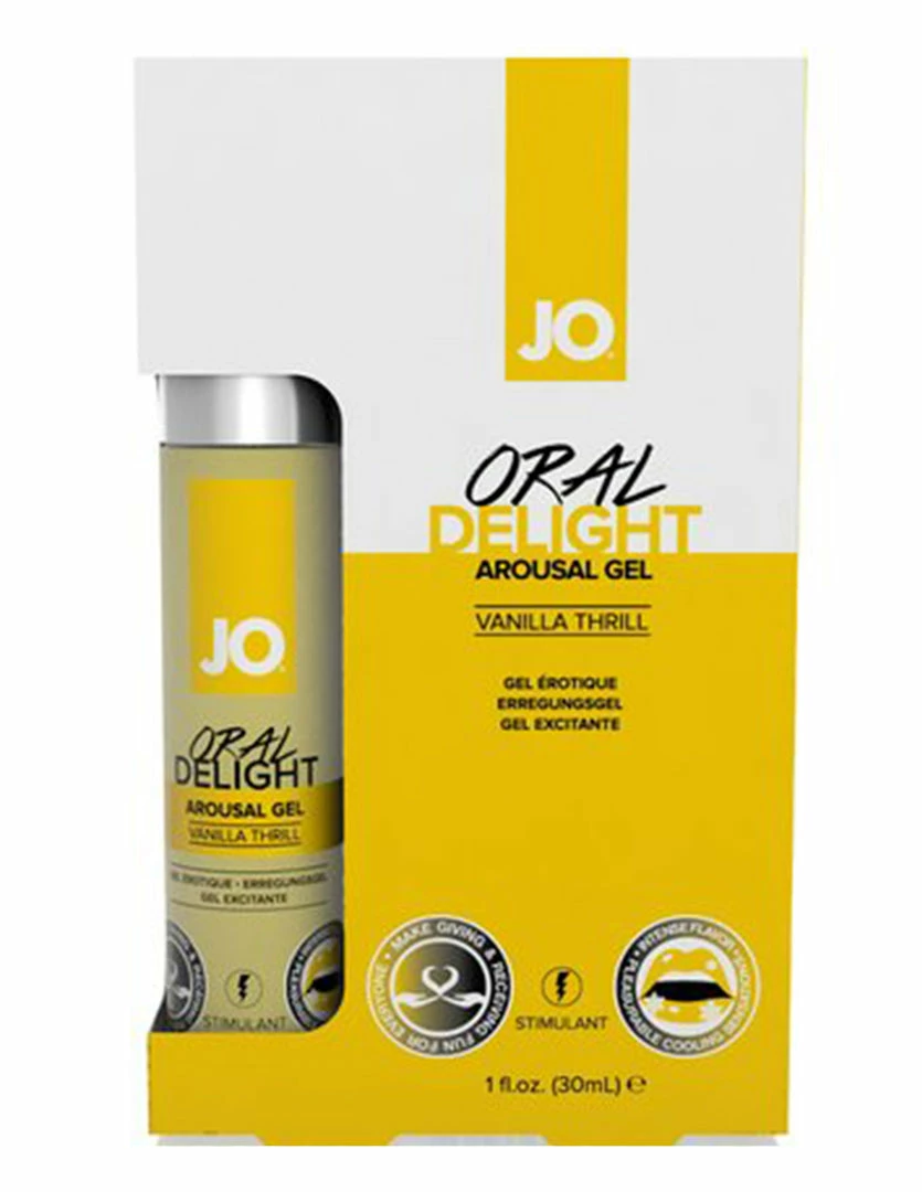 Jo Oral Delight Arousal Gel is a water-based flavored stimulant that enhances the oral sex experience for both giver and receiver. It creates a unique cooling sensation with the use of Peppermint Extract and Menthol. This stimulant does not drip or run because it’s a thickened gel that is also easy to use during foreplay and oral pleasure. Explore your sexual adventures! Available in Vanilla and Strawberry flavor.