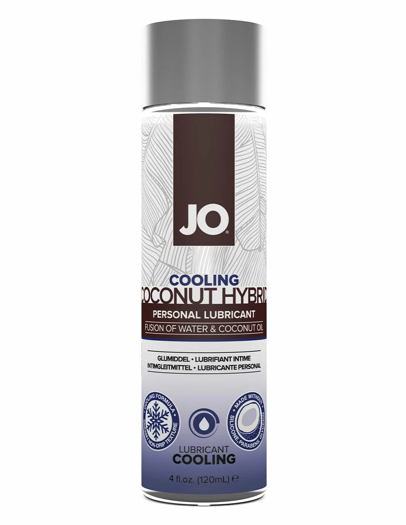 Jo Cooling Coconut Hybrid is a silicone free, water & coconut based lubricant. It has a silky smooth texture with a creamy viscosity. It is compatible with silicone toys. It has the aroma and taste of coconut. This lubricant is perfect for sex or masturbation. It moisturizes after use and does not drip while using. This product starts off rich and thins out during use. This lubricant is great for hot summers or lovers that like the cooling effect on their genital areas. It can be applied directly on the nipples, clitoris, labia, and penis. It is safe to use for vaginal and anal penetration.
