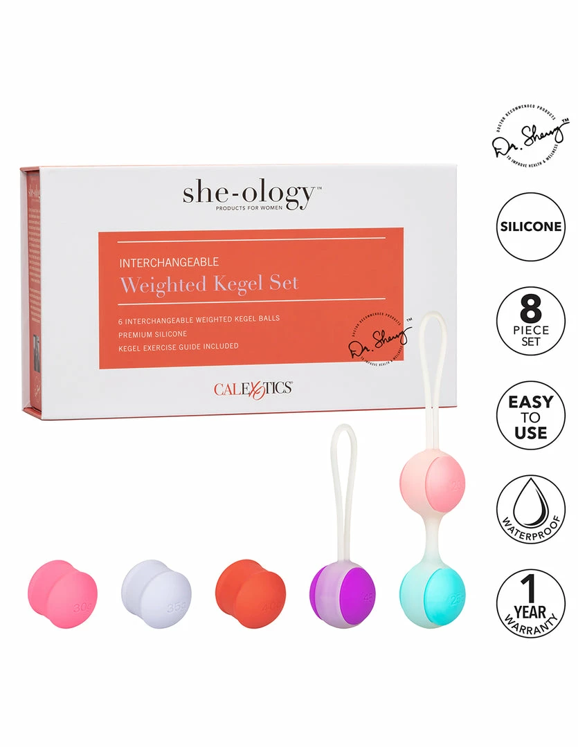 Tone up and tighten your pelvic floor muscles with the She-ology Interchangeable Weighted Kegel Set. It comes with 2 silicone loops and 6 interchangeable Kegel weights. Start with the single loop and work your way up to the heaviest ball. Then, move on to the double loop, start with the 2 lightest weights, and work your way up.