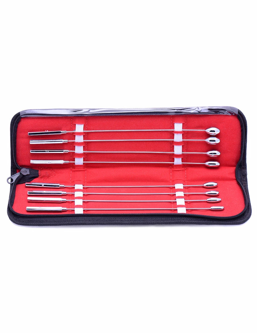 Rosebud Urethral Sounds by XR Brands are high quality and made of stainless steel. The rosebud tips come in sizes 6 mm to 13 mm. They are smooth and oblong shaped. Enhance your sounding experience with each rosebud. If you are curious about sounding, these rosebuds are a great start. This kit is hypoallergenic and comes in a velvet lined case.