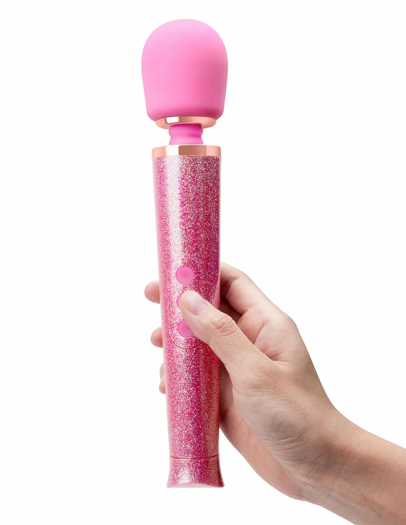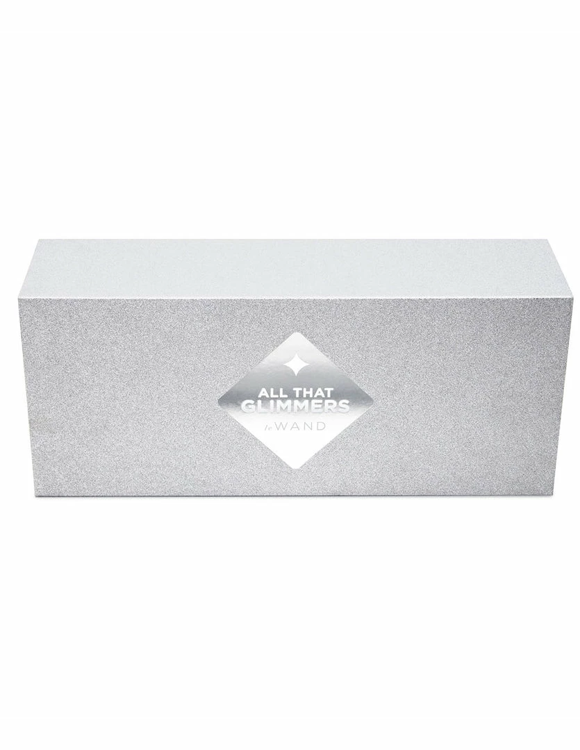 The All That Glimmers Set by Le Wand is the perfect gift set for yourself or your lover. It includes 1 Le Wand Petite Rechargeable Wand, an enamel pin, metallic temporary tattoo, Glimmer charging cord, rainbow glitter nail polish, Glimmer body gel, and a glittery storage pouch.