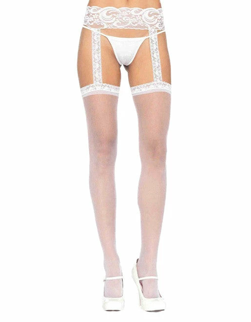Sheer lace stockings with attached lace garter that dazzles. Decorate your legs in a way that announces how hot you are.