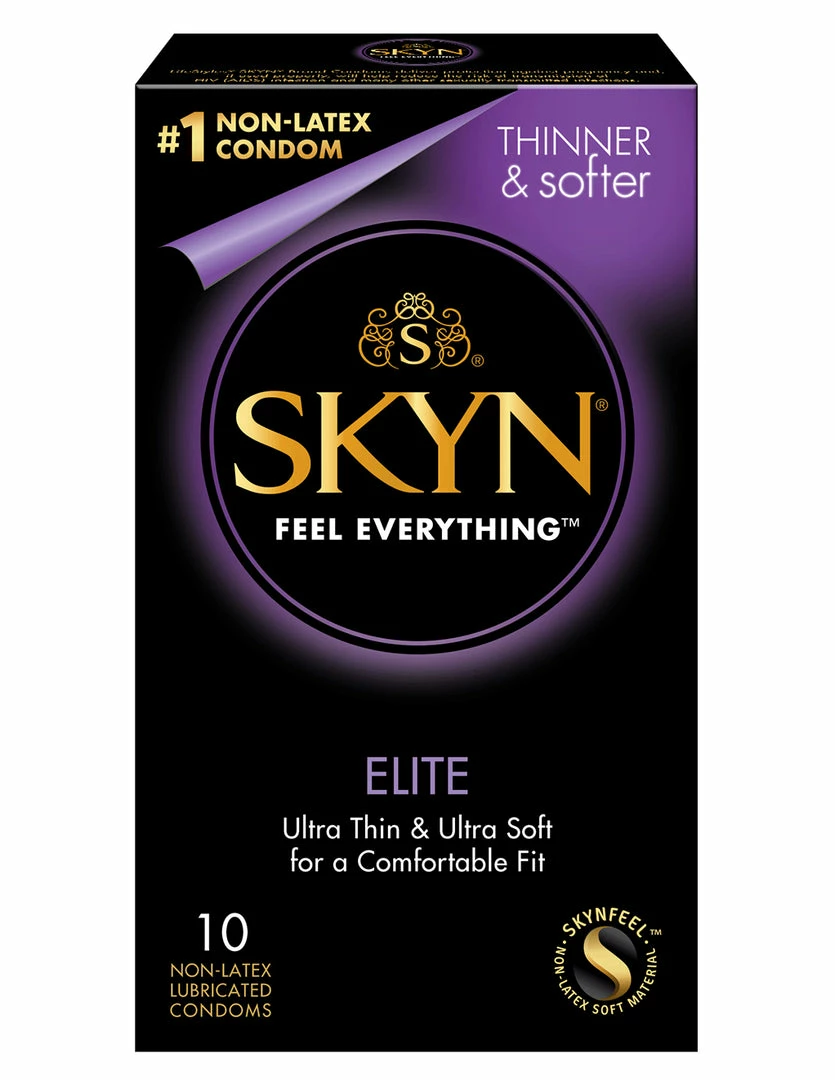 Elite by SKYN is a thinner and softer fit, latex free condom. It is made of Polyisoprene material. This condom clings closer than your average condom. Enjoy the feeling of barely wearing protection with the benefits of protection against STI’s and unplanned pregnancies. You will feel more heat and texture. SKYN Elite doesn’t leave a heavy latex smell.