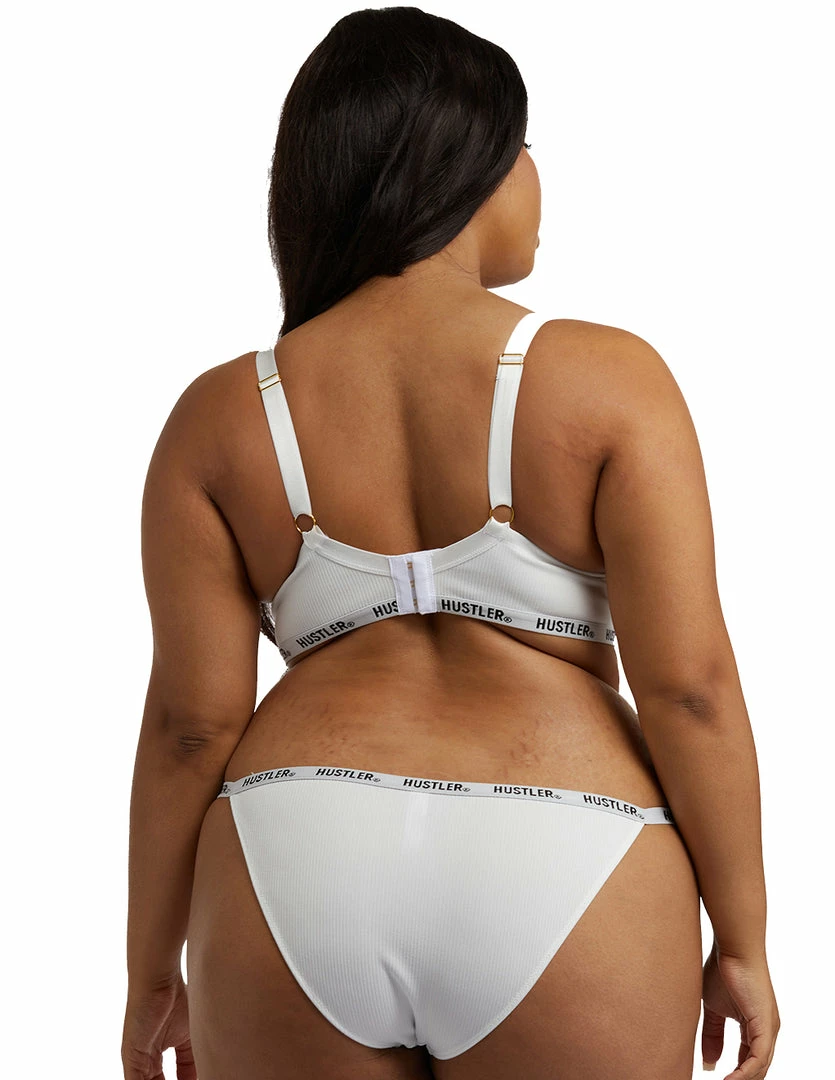 Our HUSTLER® Logo Ribbed Bra Ivory* is a sexy and classy bra. It will enhance cleavage and feels comfortable to wear. It is made of luxurious ribbed material. Its straps are adjustable and has a hook and eye closure. Pair this bra with our HUSTLER® Logo Ribbed Tanga Brief or High Waist Thong Ivory to complete the lingerie set.