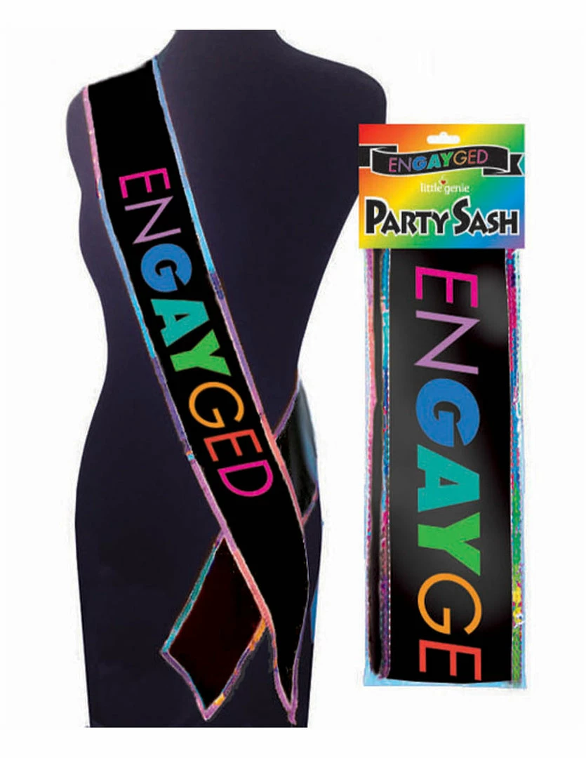 This Engayged Sash is vibrant and bold. It has all the colors of the rainbow. What a sweet way to show your pride. The lining of this reflects the rainbow. It is easy to wear and won’t get in the way of your celebration.