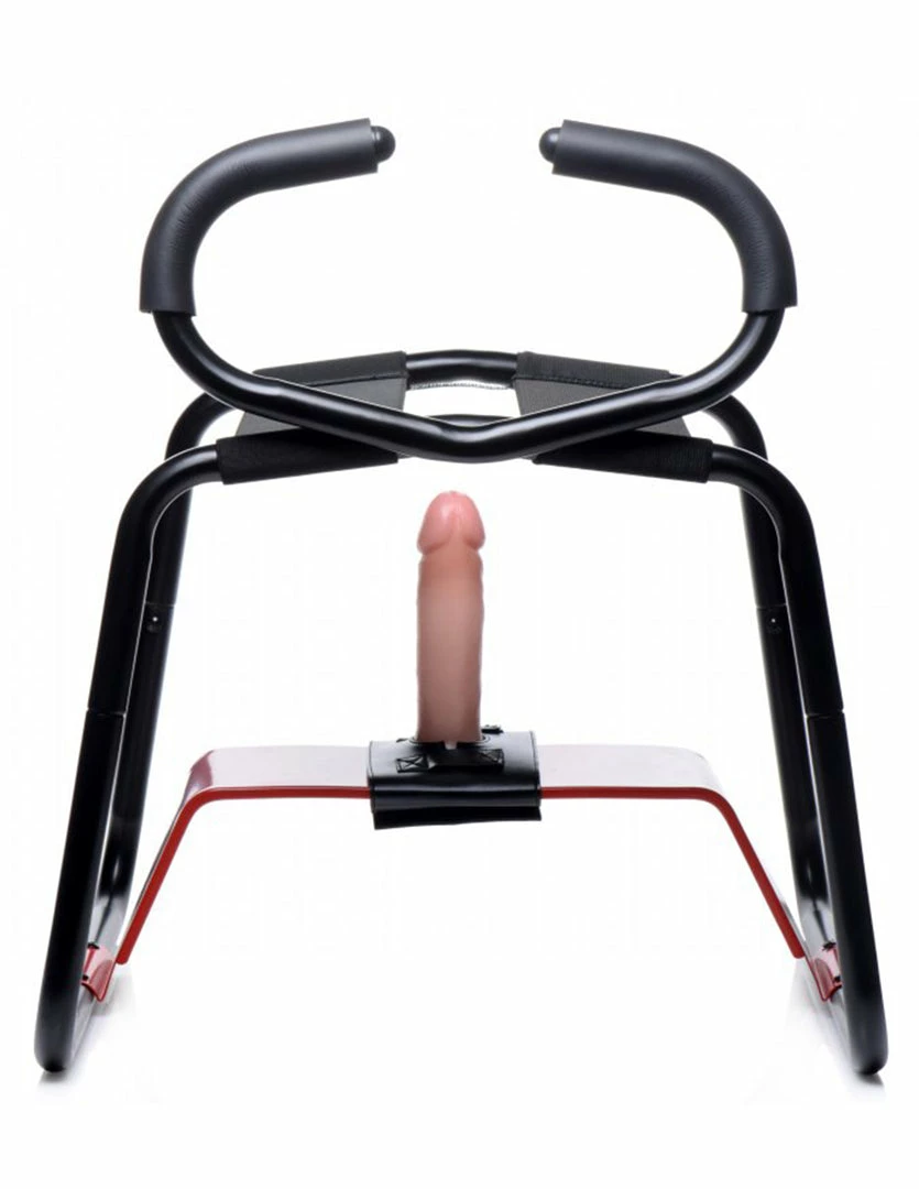 The durable steel design holds up your weight and angles you perfectly against your target. The included raiser bar can accommodate any dildo of your choosing. Explore different positions and love making methods with your lover from face sitting to watching your partner get off.