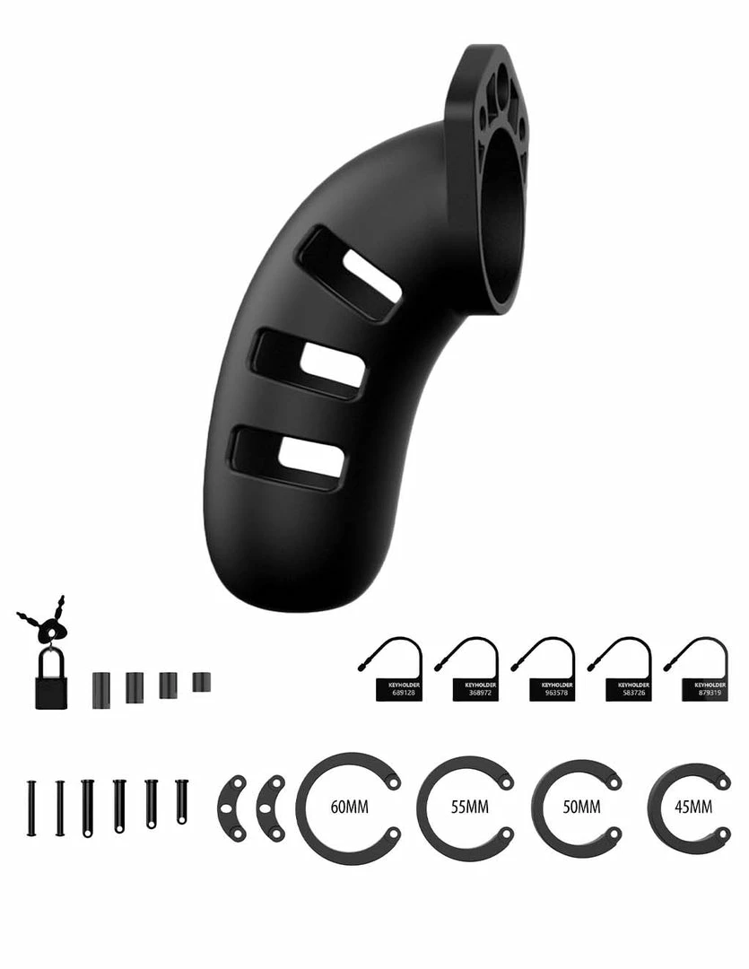 Put the pecker on pause with the ManCage Model 21 Silicone Cock Cage 4.5″. To fulfill your BDSM fantasy, let your dominant partner lock you up in this cock cage that is generously sized. This will prevent you from getting an erection, thus making the release out of the locks a lot more relieving. The medical grade silicone makes this safe to be worn all day. There are ventilation openings that can be used to make it more airy and for toiletry. For your Dominant partner’s pleasure, they will be able to lock you up using the spacers and rings . Use the plastic clasps as they are discreet enough to pass a security check if used for daily wear. Get all locked up into your own BDSM fantasies with the ManCage Model 21 Silicone Cock Cage 4.5″.