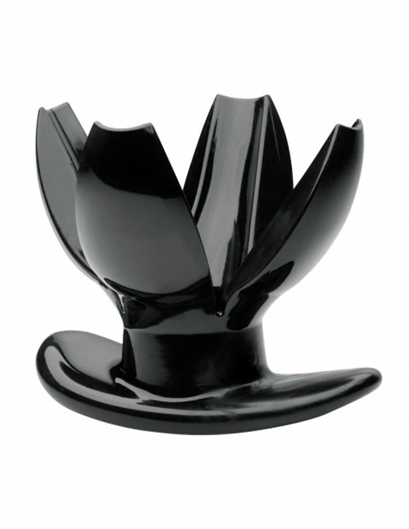 The Claw by Master Series is for adventurous anal play. It is 4.5 inches long. It is 2.25 inches wide when it is closed and 4.25 inches wide when it is open. It has a 1.5 inch diameter hole at its center when the claw is closed. This plug is made with TPE material, a soft plastic and rubber material that can be easily bent. Hold the Claw together to insert it. Once inserted, the claw will open up like a lotus and dilate the inner rectal area as long as the organ allows it to expand. It does not open forcefully, it has a flimsy give that lets it gently open. Use water based lubricants with this toy, as silicone products may deteriorate its material. Wash it with your favorite toy cleaner before and after each use.
