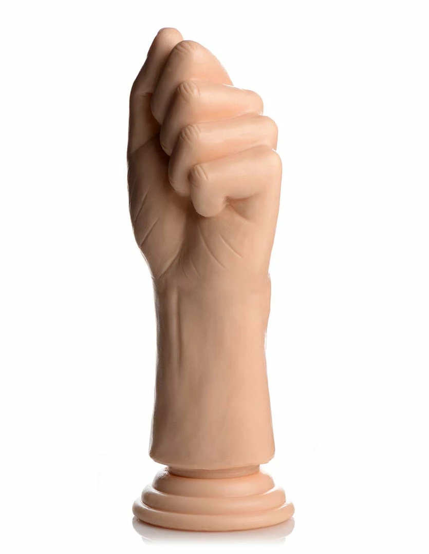 Use the Master Series Knuckles Dildo for a fistful of fun! This knuckled shaped dildo will redefine what it means for a fist pump! This clenched fist is perfect for vaginal and anal use. The soft realistic texture can also be use to massage your outer areas. This handy toy measures with 9.5 inches in total length with 8.5 inches of insertable length and 3.2 inches of width. The flared and suction cup base makes it versatile enough for partner play or mounting for strap on harnesses. The soft, realistic feeling silicone is body safe and can be paired with any water based lubricants. When you really feel like getting handsy use the Master Series Knuckles Dildo.
