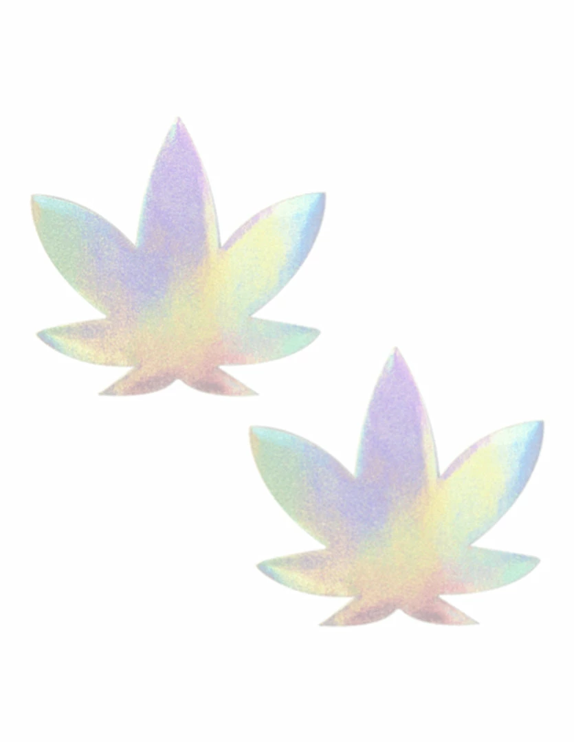 Enhance your next outfit with these Holographic Weed Pasties by Neva Nude. Neva Nude creates their pasties from swimsuit material and latex-free adhesive. They are waterproof and can be worn in the pool. These pasties stay in place all night long. Wear these bright and colorful Weed Pasties with your favorite sheer tops, a scandalously low dress, or by itself as a top! They’re perfect for raves, pool parties, adult parties, and more!