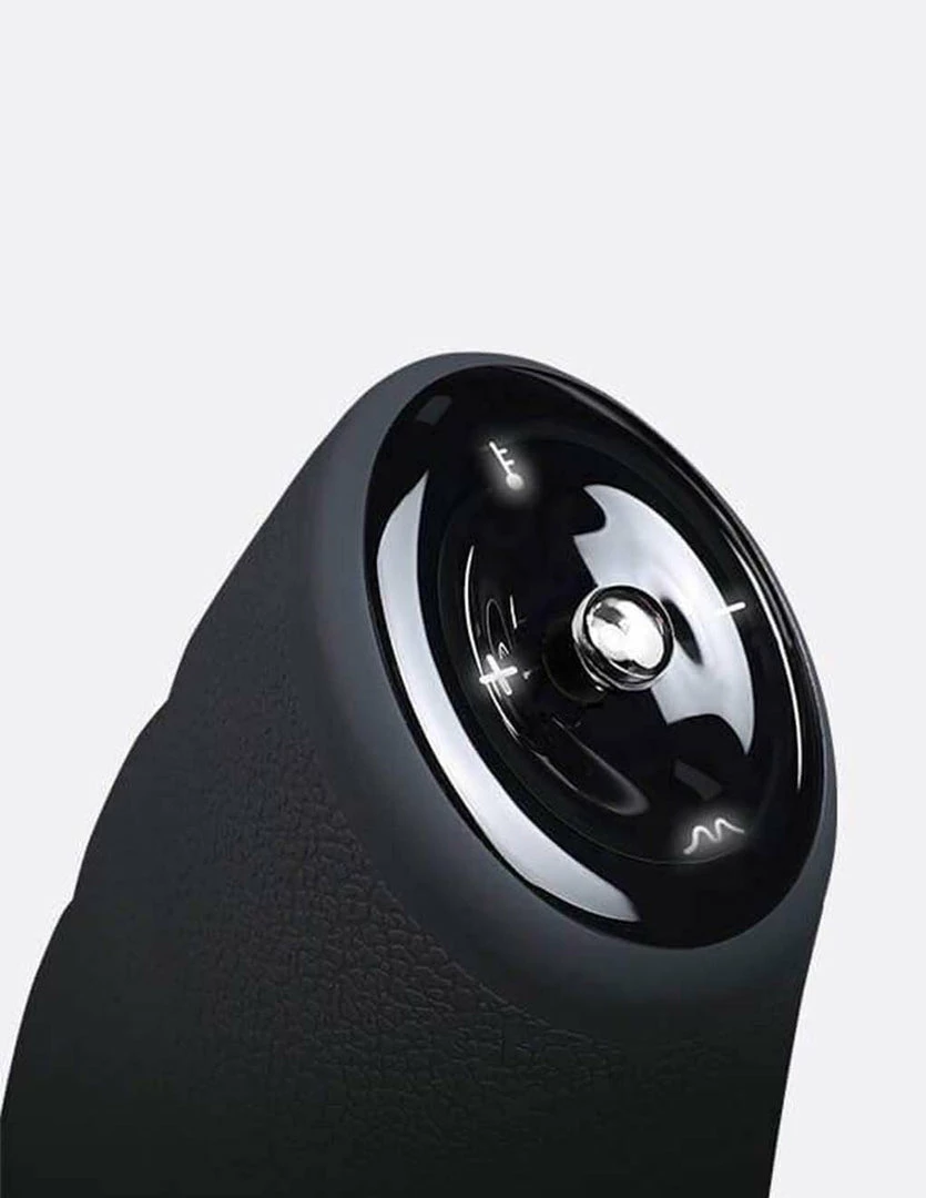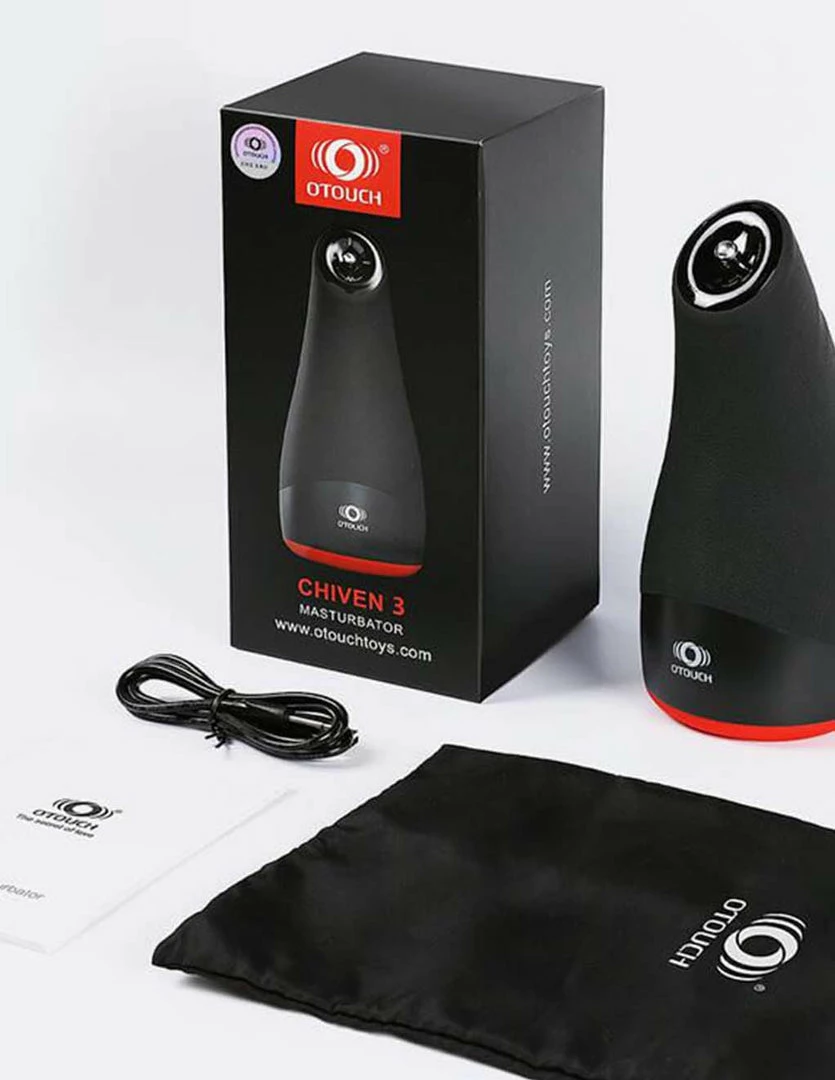 Bring the heat with the OTouch Chiven 3 Masturbator. This sleek and stroking, we mean striking toy offers a variety of different features to get you turned on to get your masturbation on a new vibe. This comes complete with a throat shaped inner chamber. This deep throat is wide, smooth, and soft with grooves with a tongue and uvula. Any gamers will feel the satisfaction of the joystick controls. The easy to use control pad takes over the powerful motor to take command of the 6 vibration pattern with 3 intensities each. You’ll be able to get your shaft in head engulfed into the chamber at a rate of 2000 vibrations per minute. The top control gives you access to the heating function. When you’re eyes are close from the tantalizing vibrations, you’ll be able to still familiarize yourself with the controls as each movement with joystick has its unique sound. The ergonomic curve of Chiven 3 makes this easy to maneuver around to get just the right grip for your satisfaction. Lube up with your favorite water based lubricant or play with in the shower as this masturbator is waterproof and easy to clean. It measures at 7.75 inches in total length with a width of 3 inches. Never run out of the warming and vibrating fun with the USB charging cable included in the kit.
